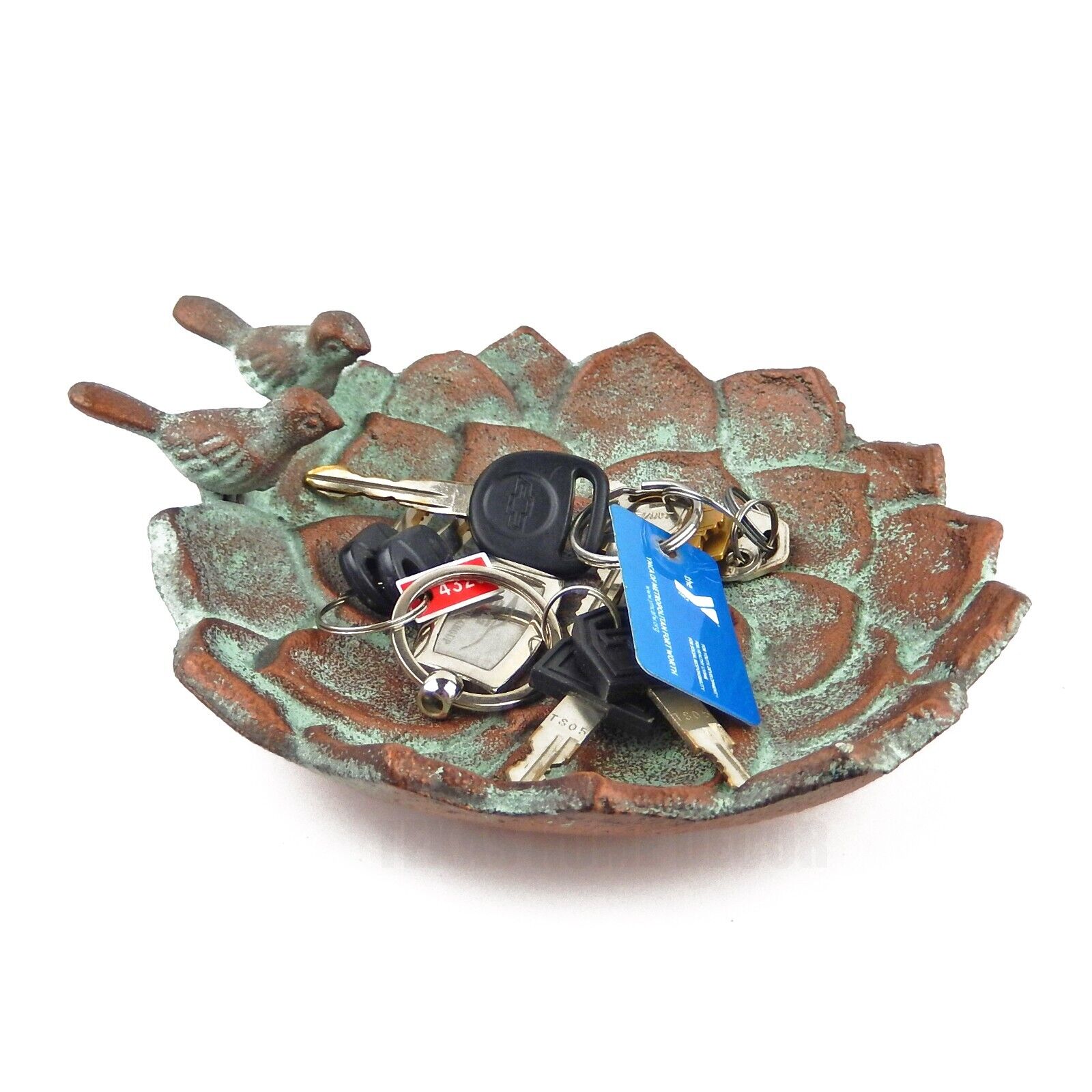 Love Birds Rose Flower Jewelry Trinket Dish Tray Cast Iron Key Holder Verdigris #10637