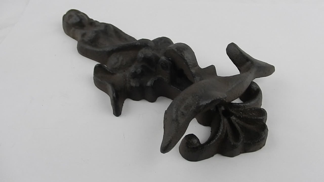 Cast Iron Mermaid Dolphin Door Knocker Nautical Beach Decor Rustic Antique Style