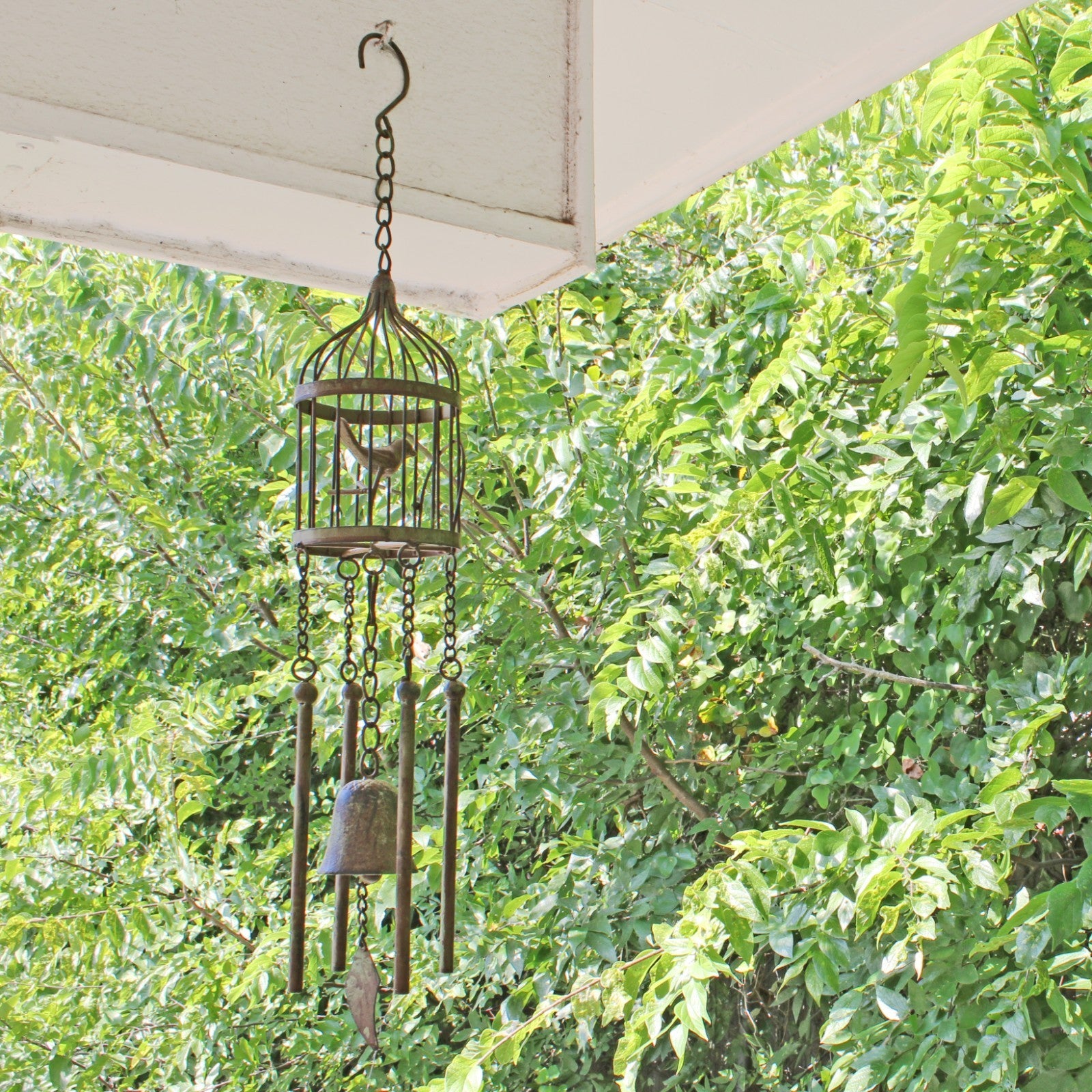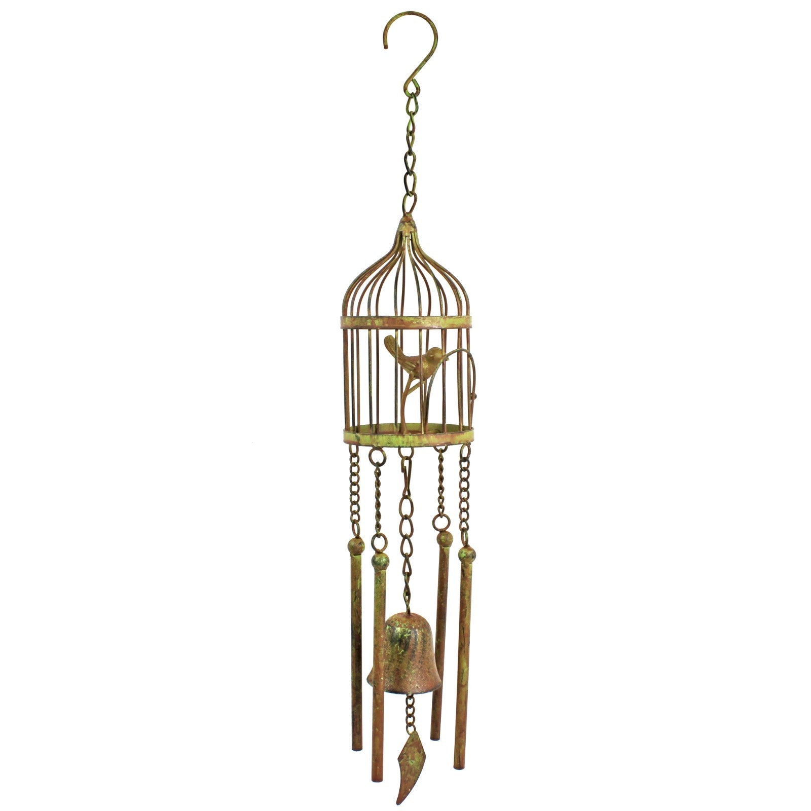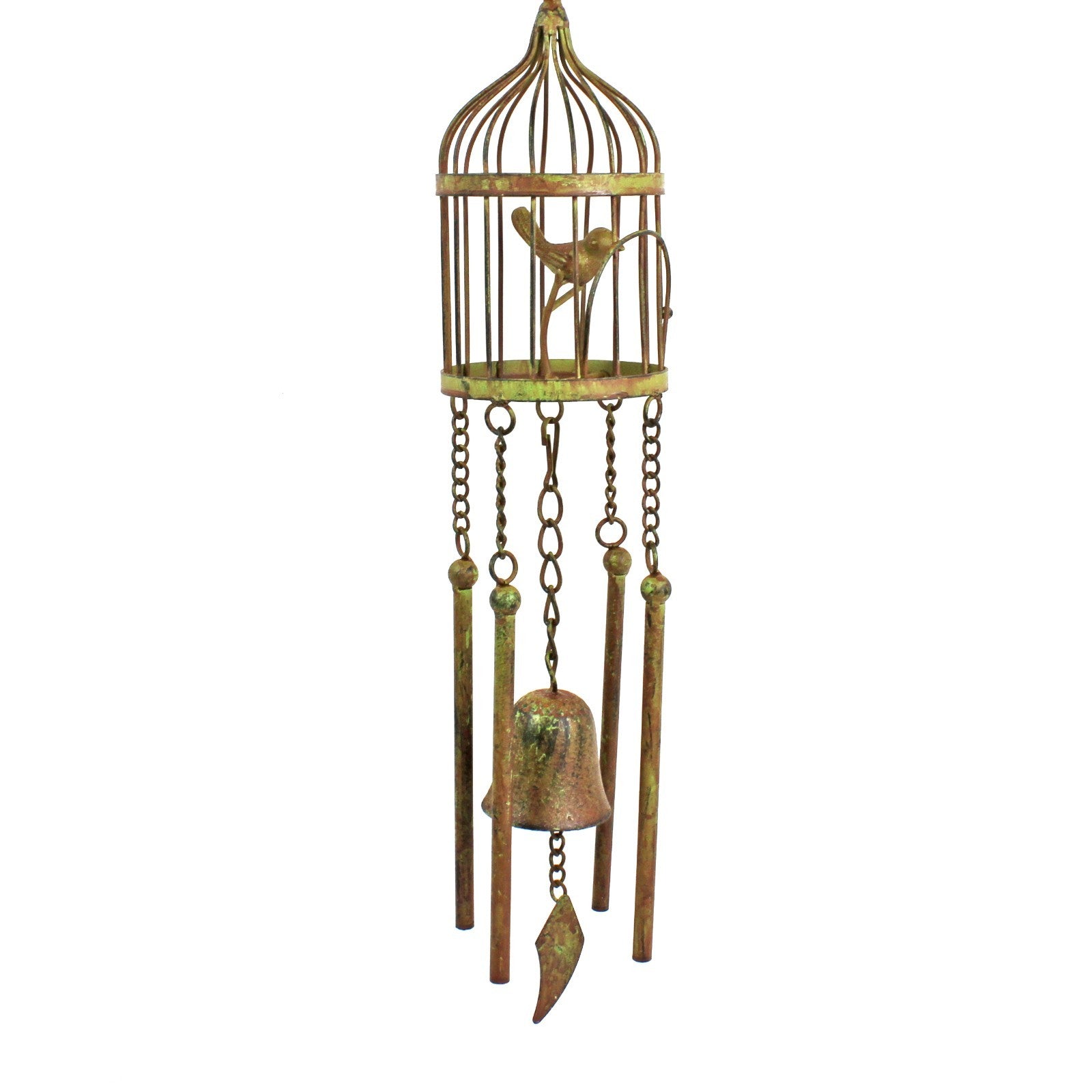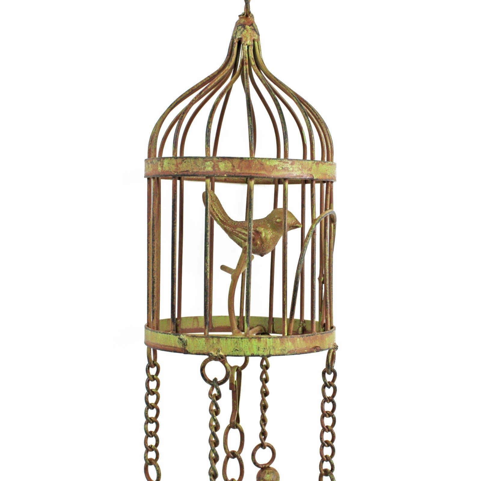 Metal Bird Cage Bell Wind Chime Garden Porch Tree Decor Rustic Verdigris 24 inch