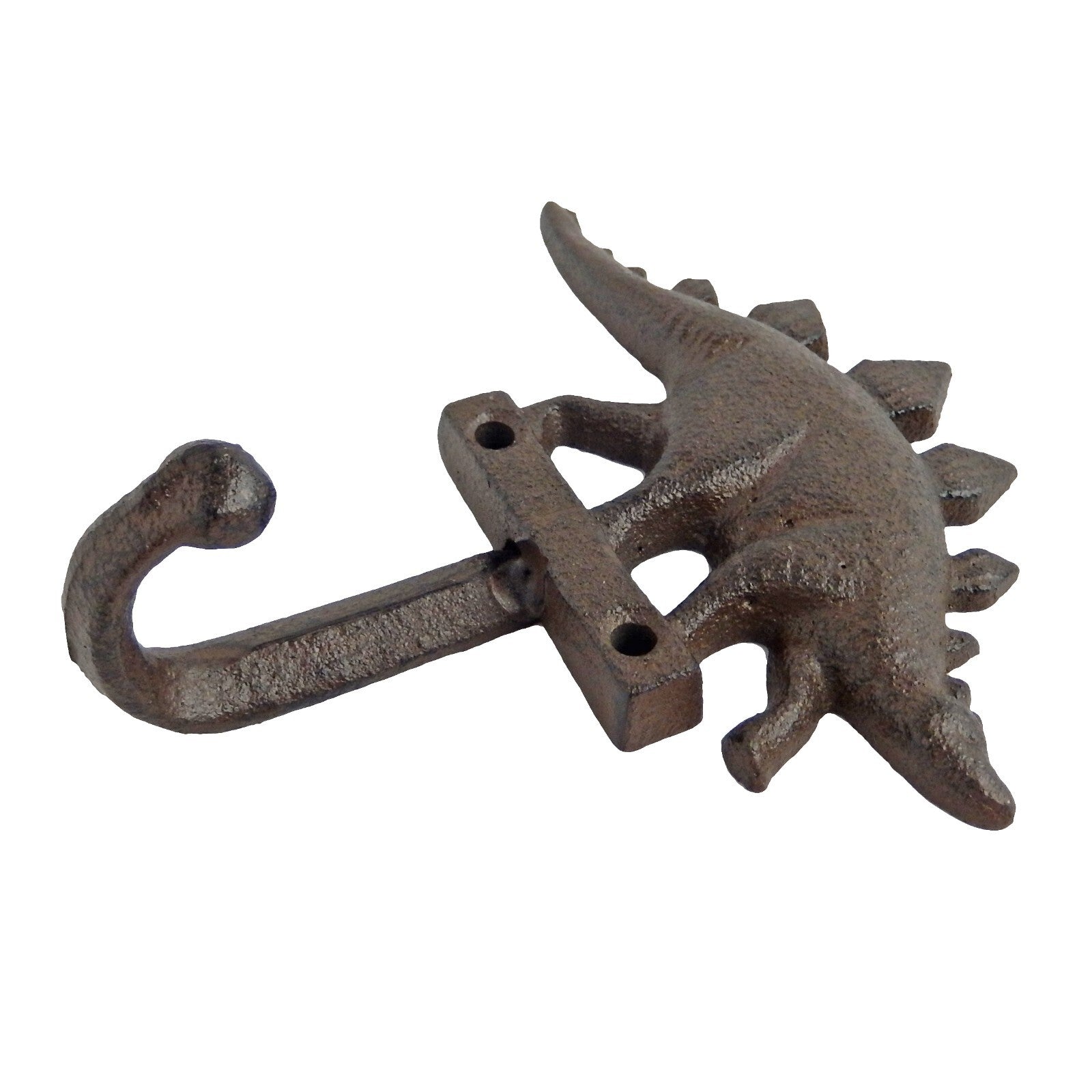 Metal Cast Iron Dinosaur Wall Hook Key Towel Coat Hanger Rustic Brown Finish