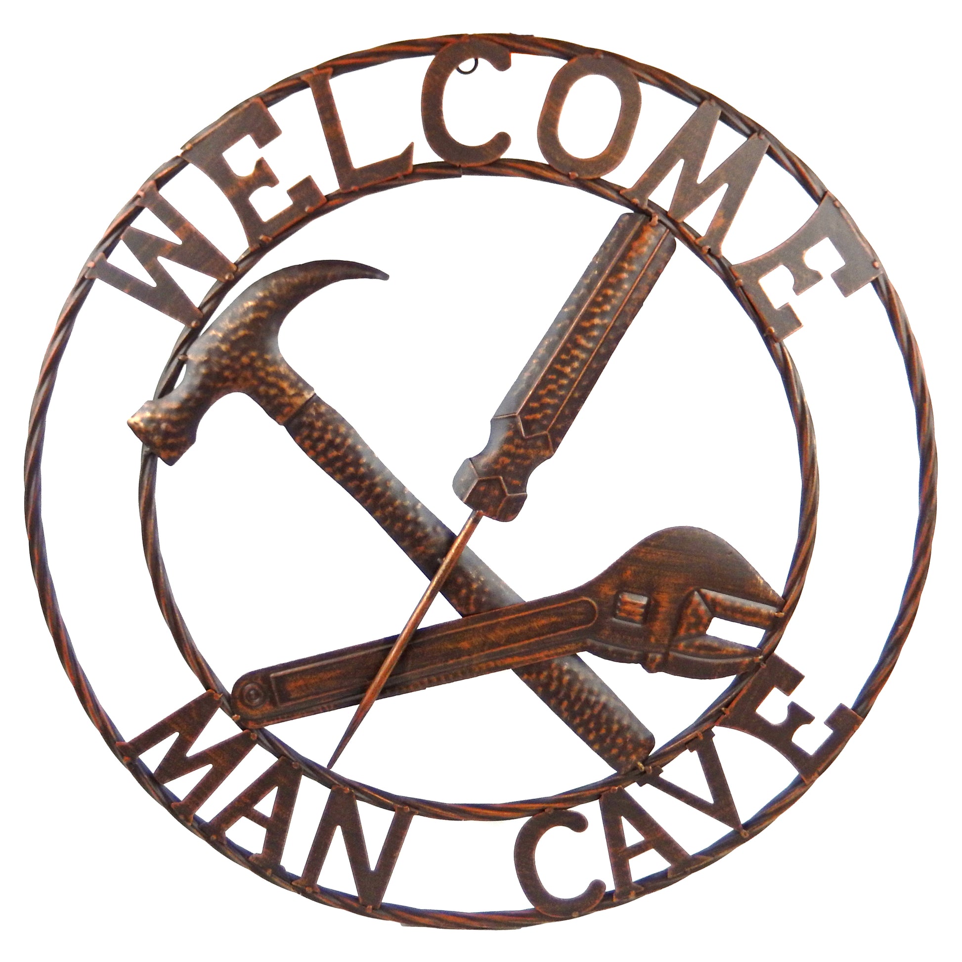 Metal Man Cave Welcome Wall Decor Wrench Hammer Screwdriver Mechanic Garage Brown 24 inch #B7195