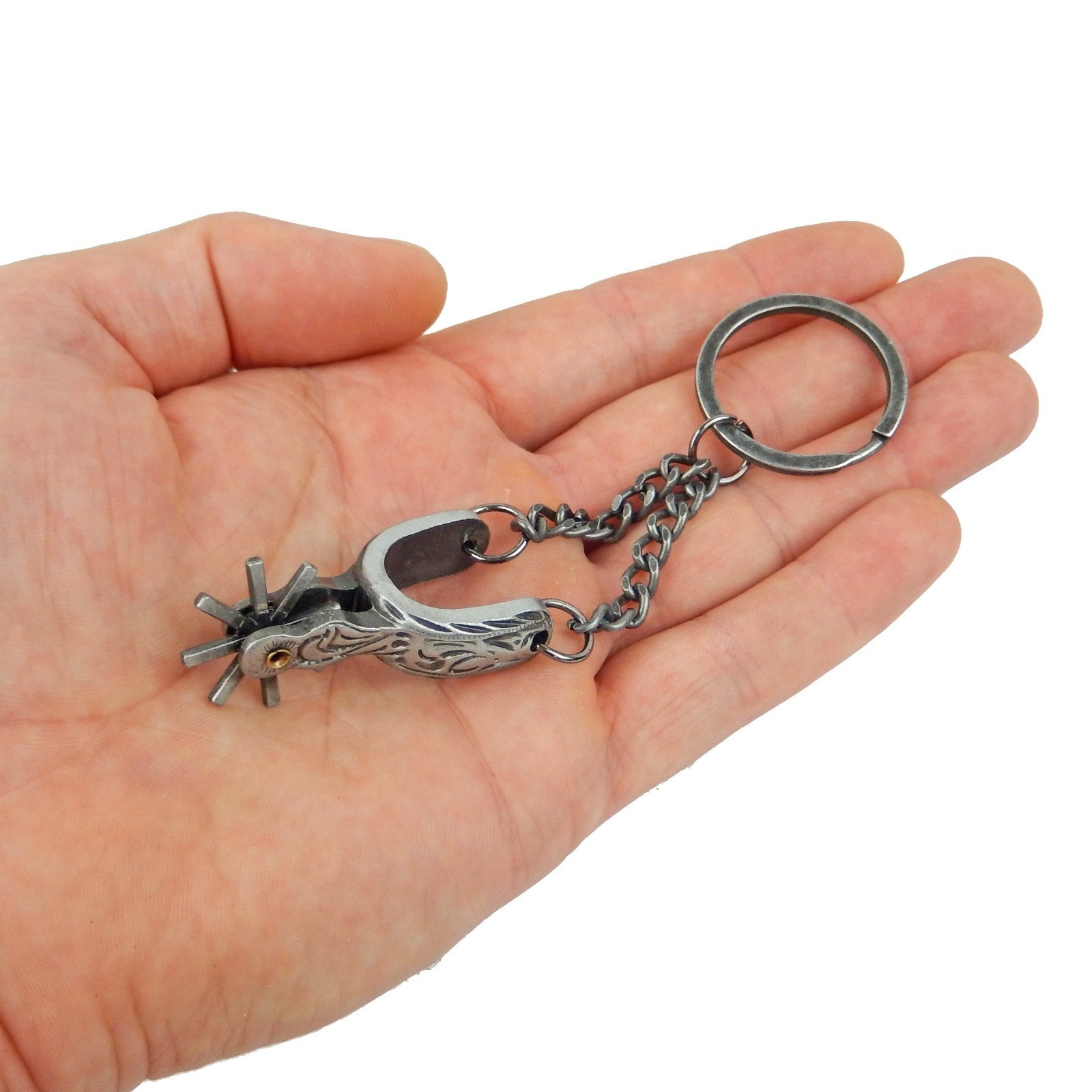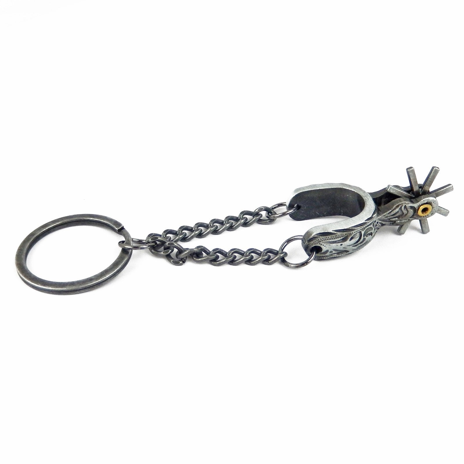 Metal Western Cowboy Spur Keychain Keyring Antique Silver Finish 4 3/4 inch Long