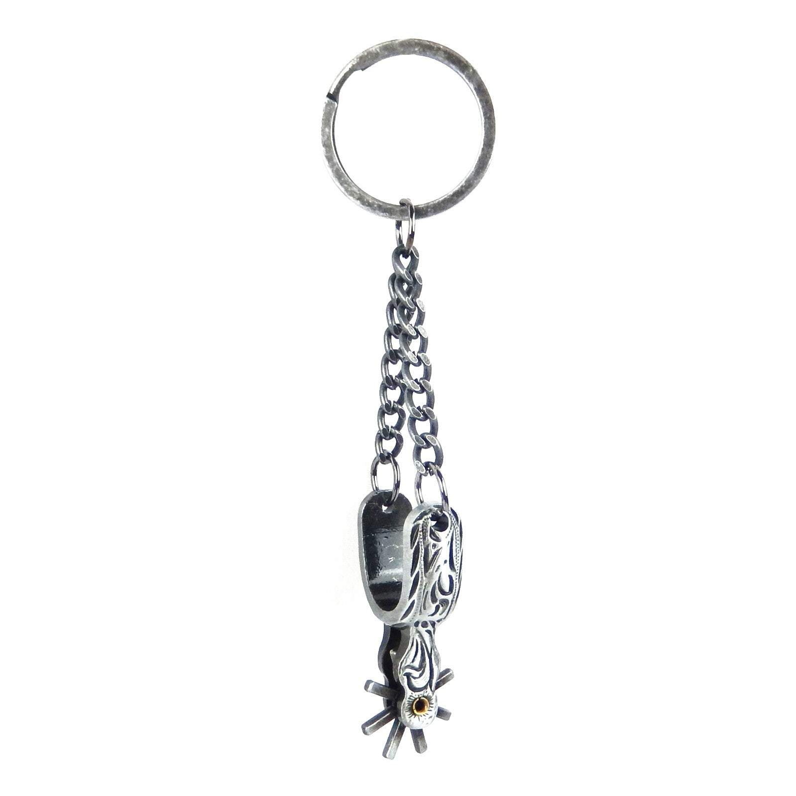 Metal Western Spur Keychain Antique Silver #HK-060S