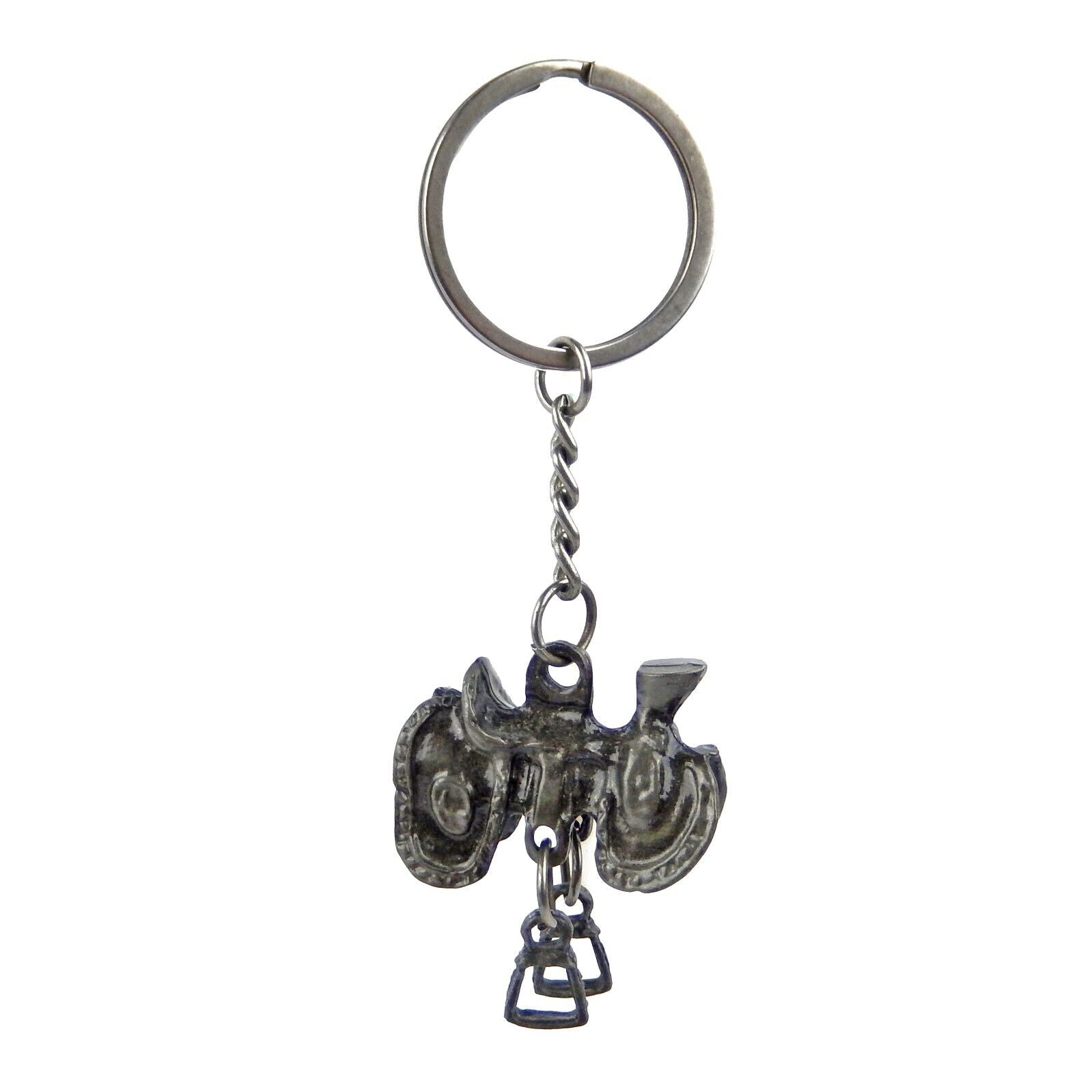 Metal Western Horse Saddle Keychain Keyring Antique Silver Finish 4 inch Long