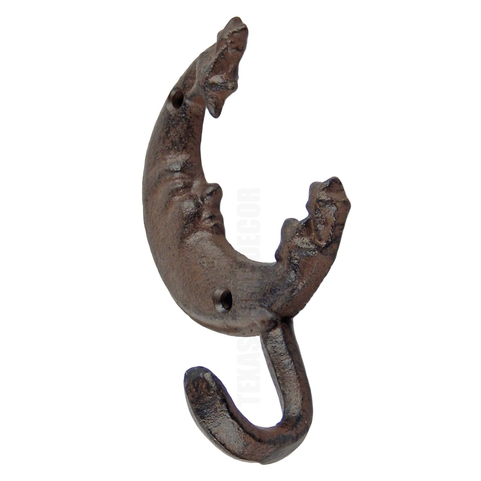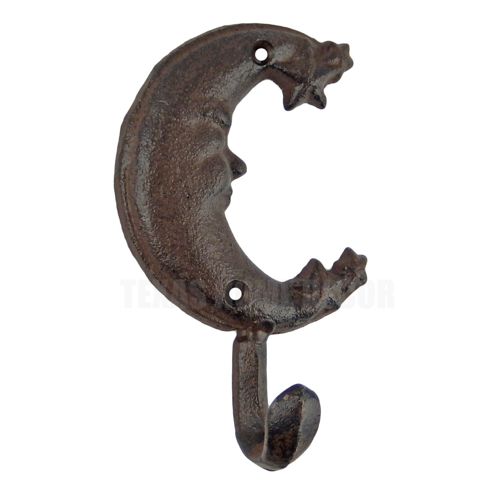 Moon Face Stars Wall Hook Cast Iron Key Towel Coat Hanger Antique Style Brown
