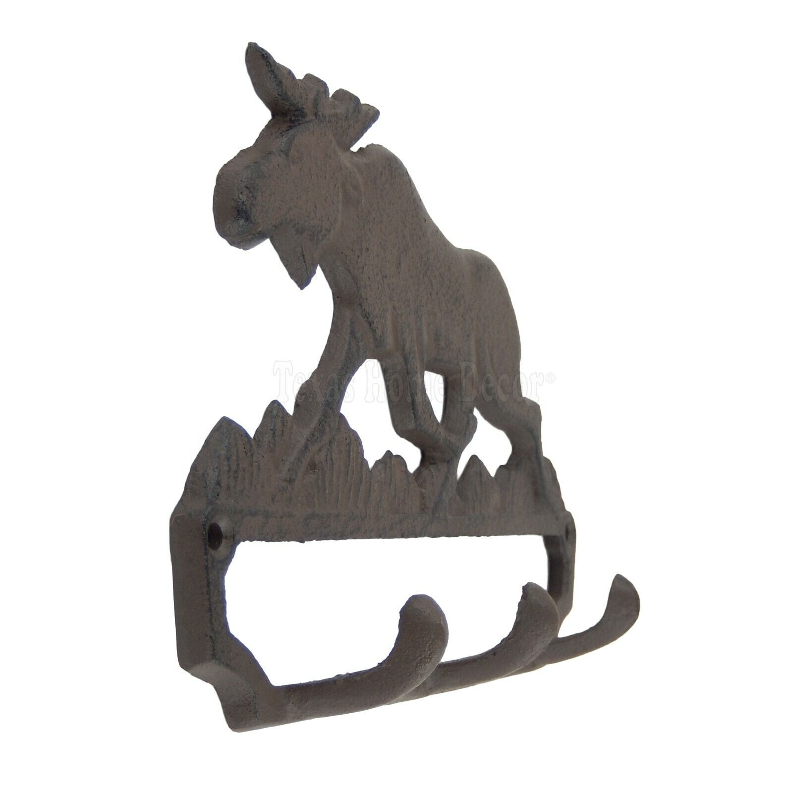 Moose Key Rack Cast Iron Coat Towel Hanger Rustic Brown Wall Mounted
