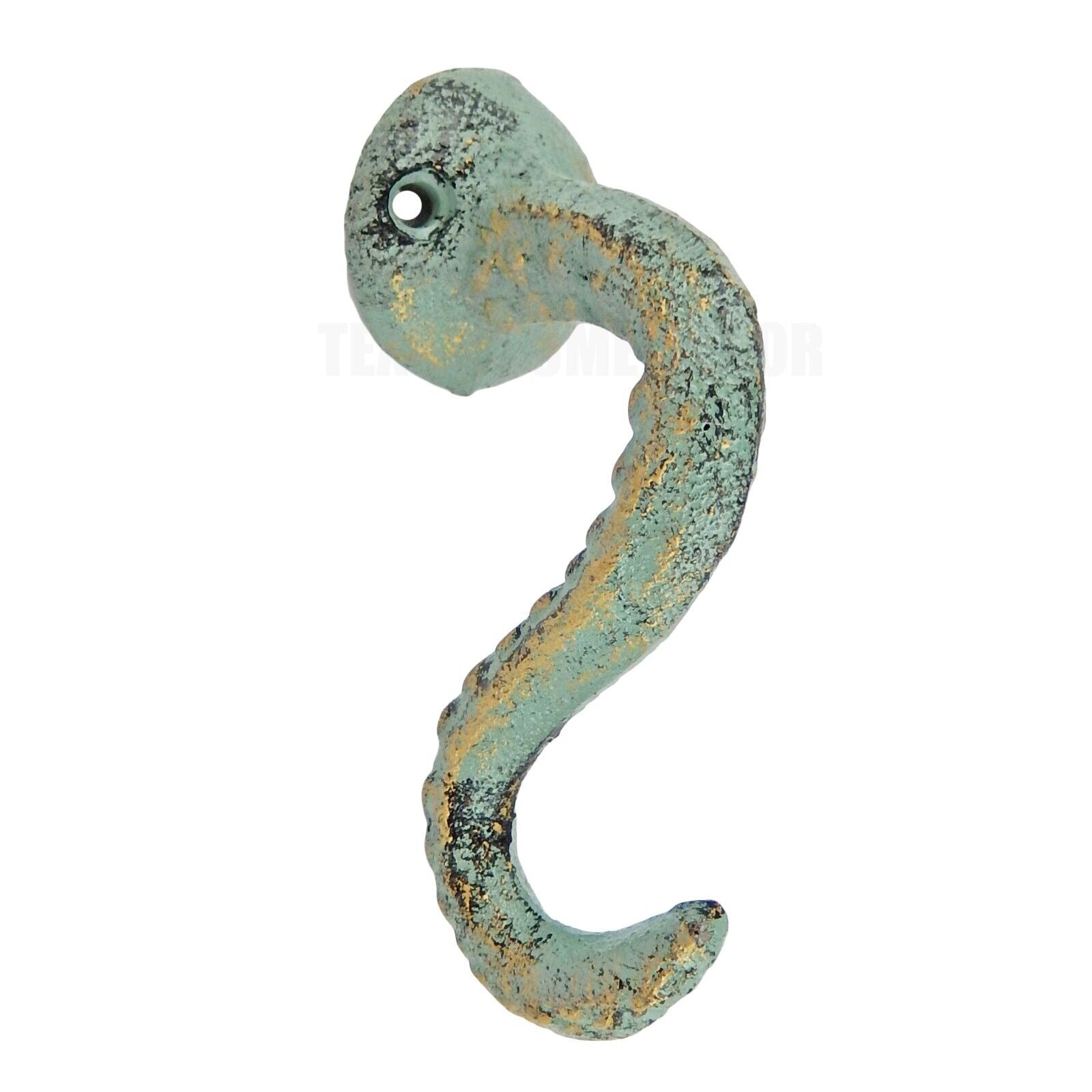 Octopus Tentacle Wall Hook Cast Iron Coat Towel Hanger Green Gold Nautical Beach