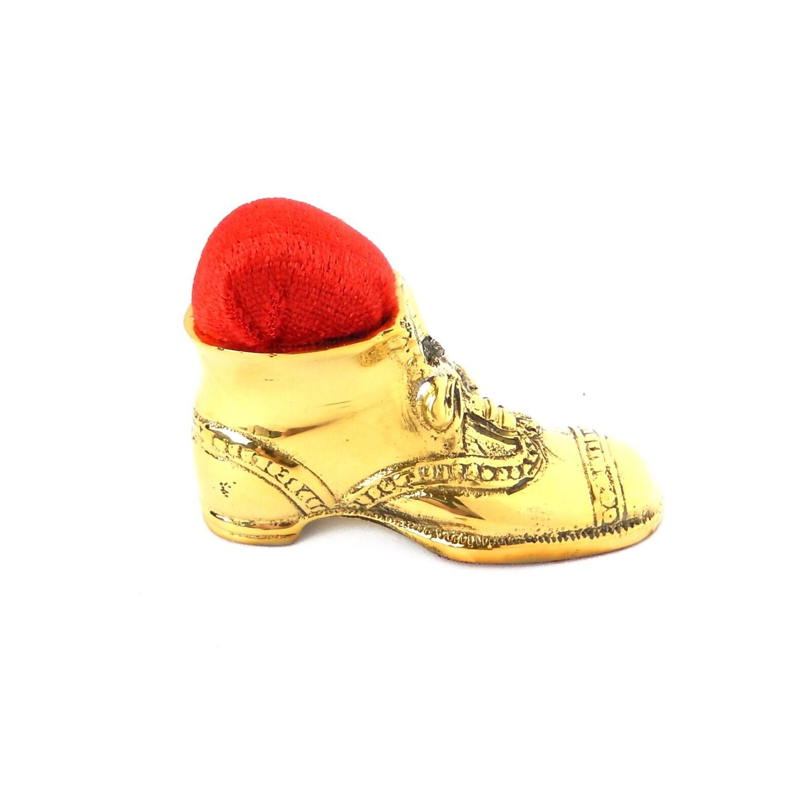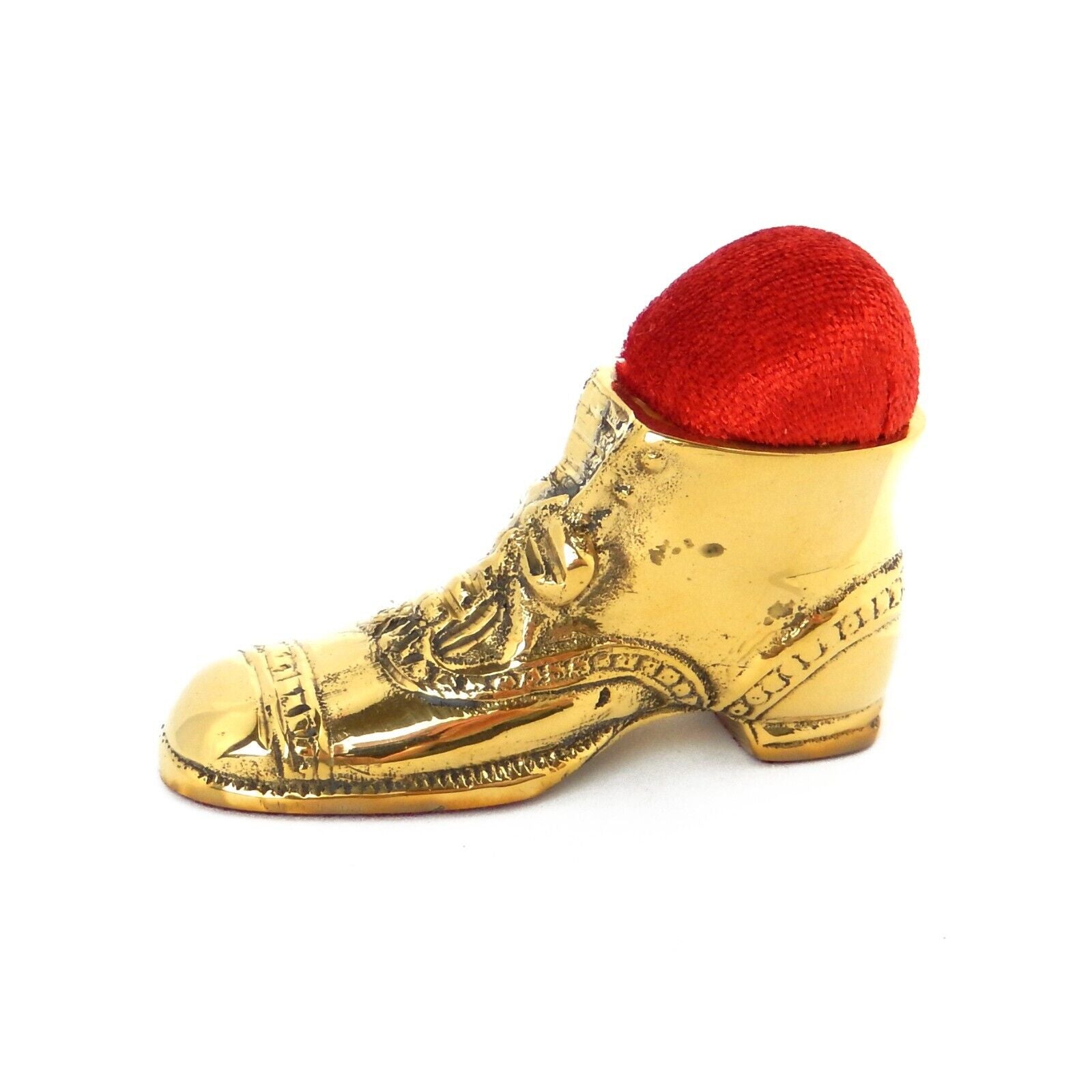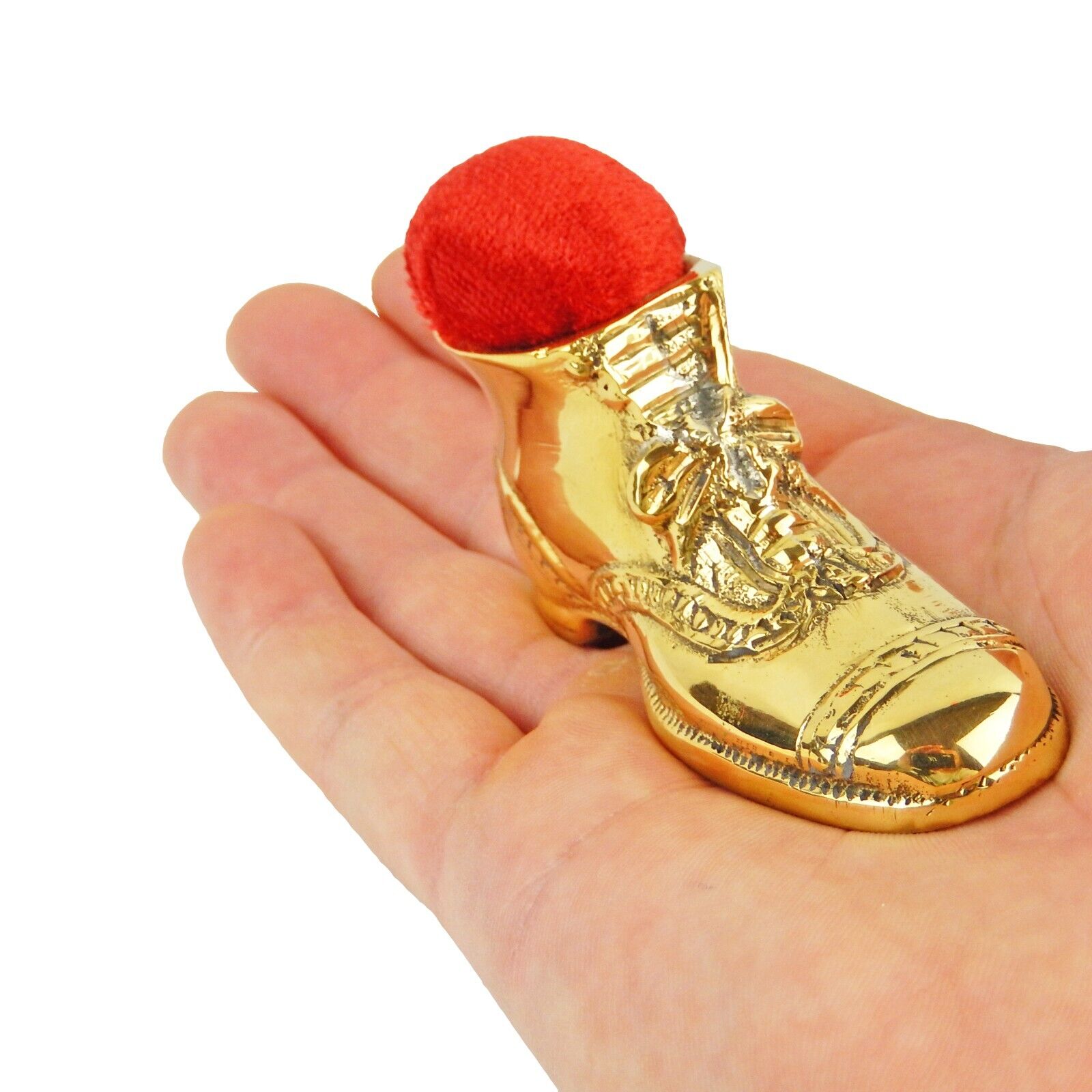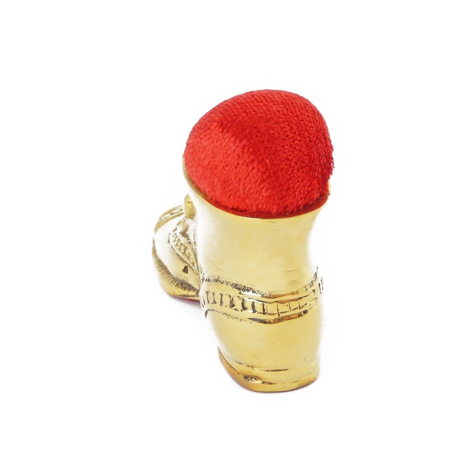 Old Dress Shoe Victorian Red Velvet Pin Cushion Solid Brass Antique Style