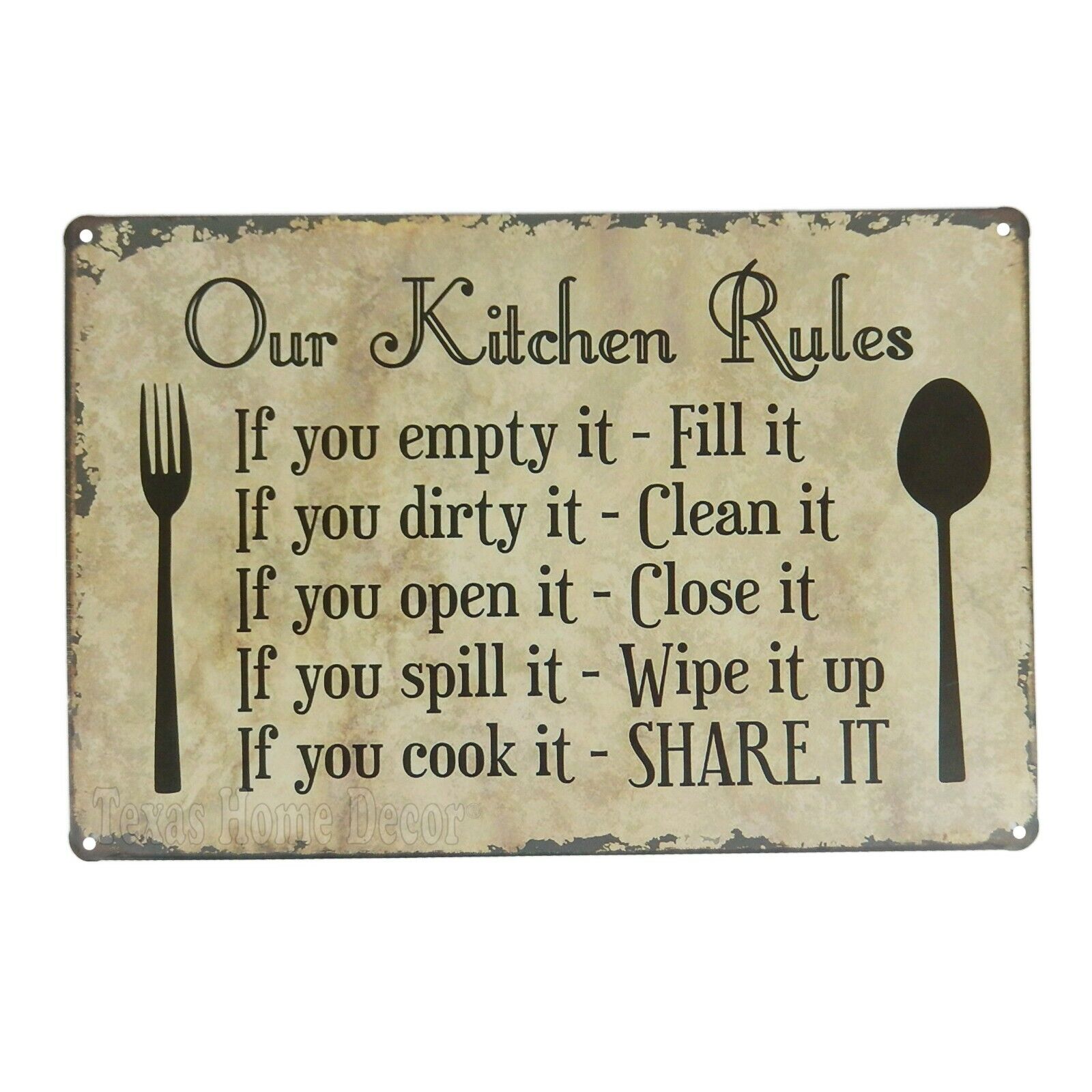 Our Kitchen Rules Metal Tin Sign Light Weight Design Clean It, Wipe It, Share It