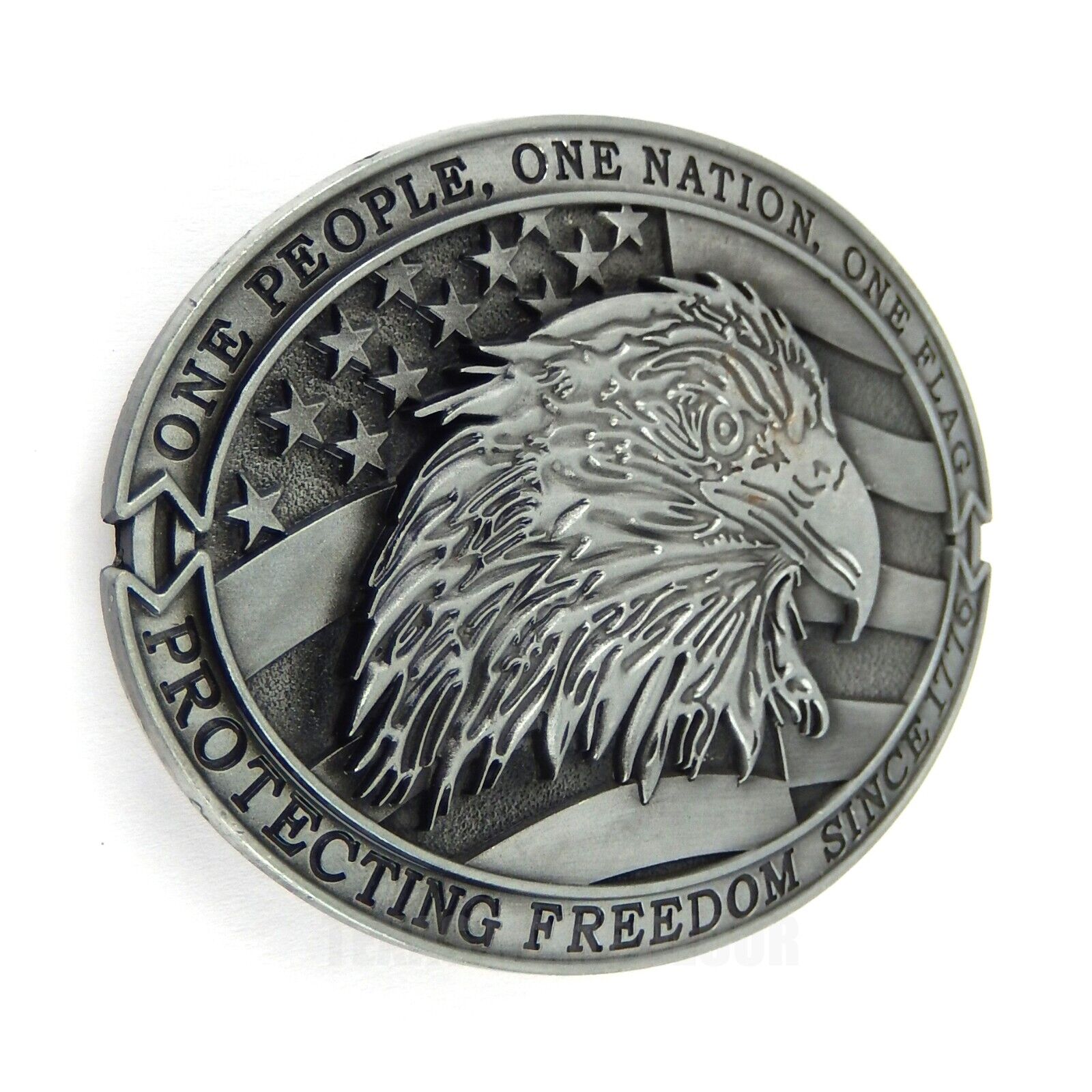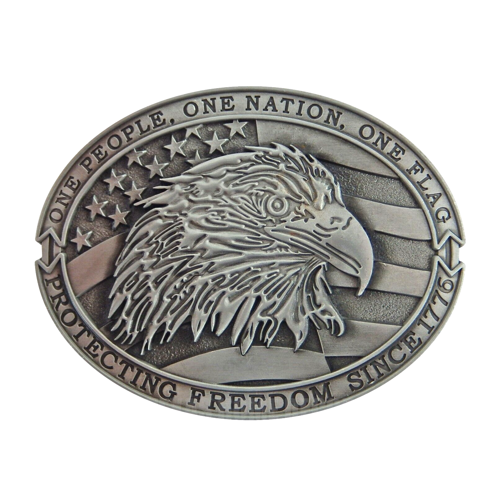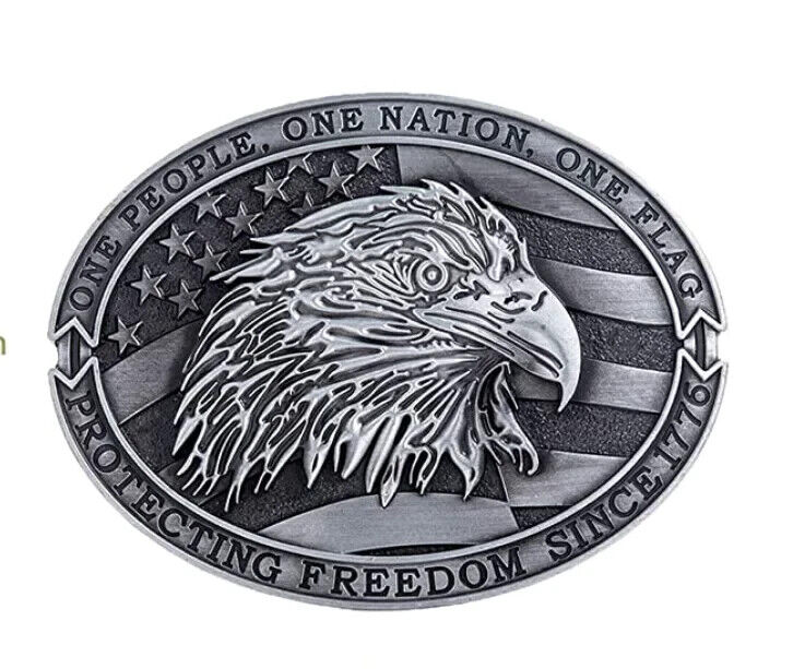 Oval American Flag Eagle Freedom Since 1776 Belt Buckle Antique Silver Tone #1783ATS