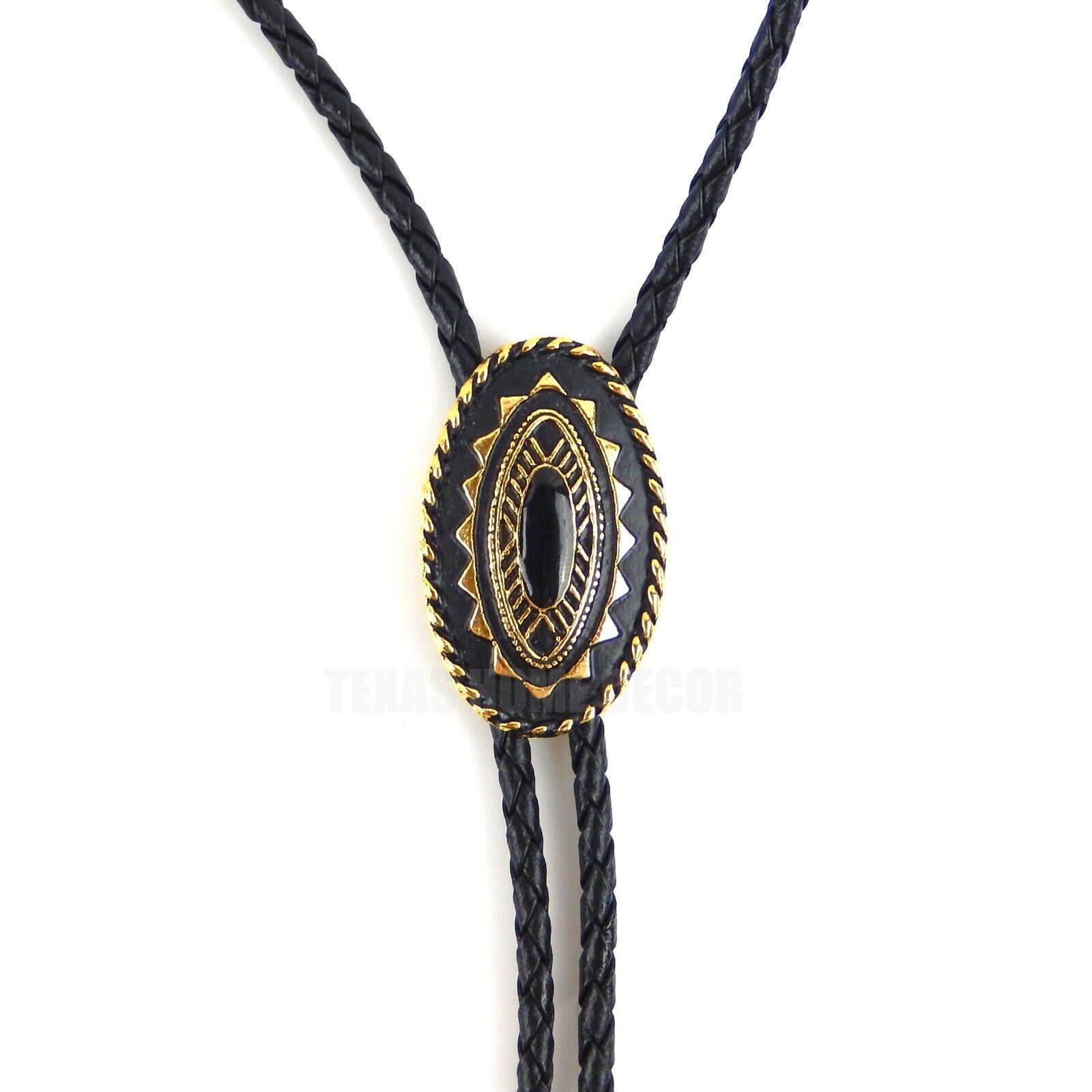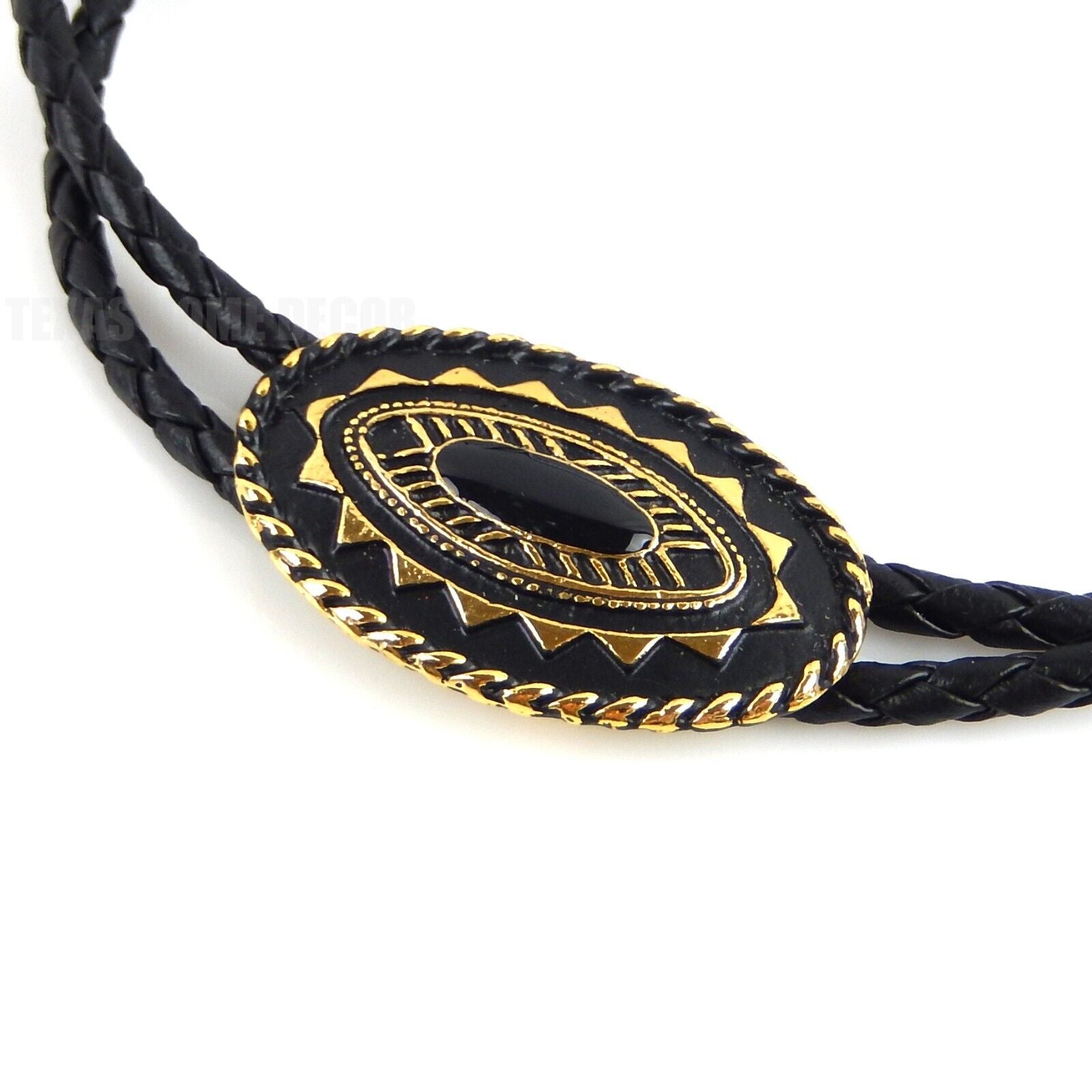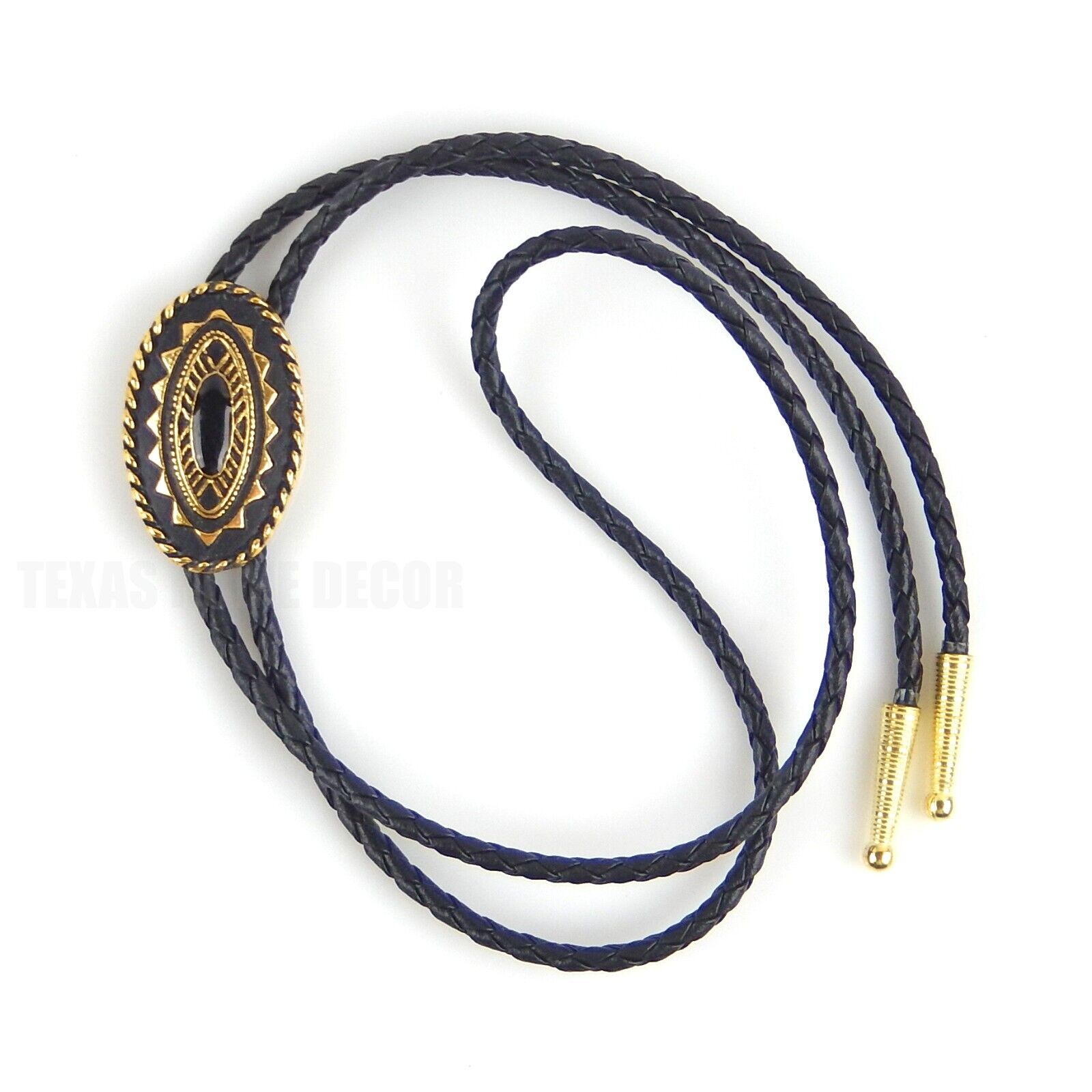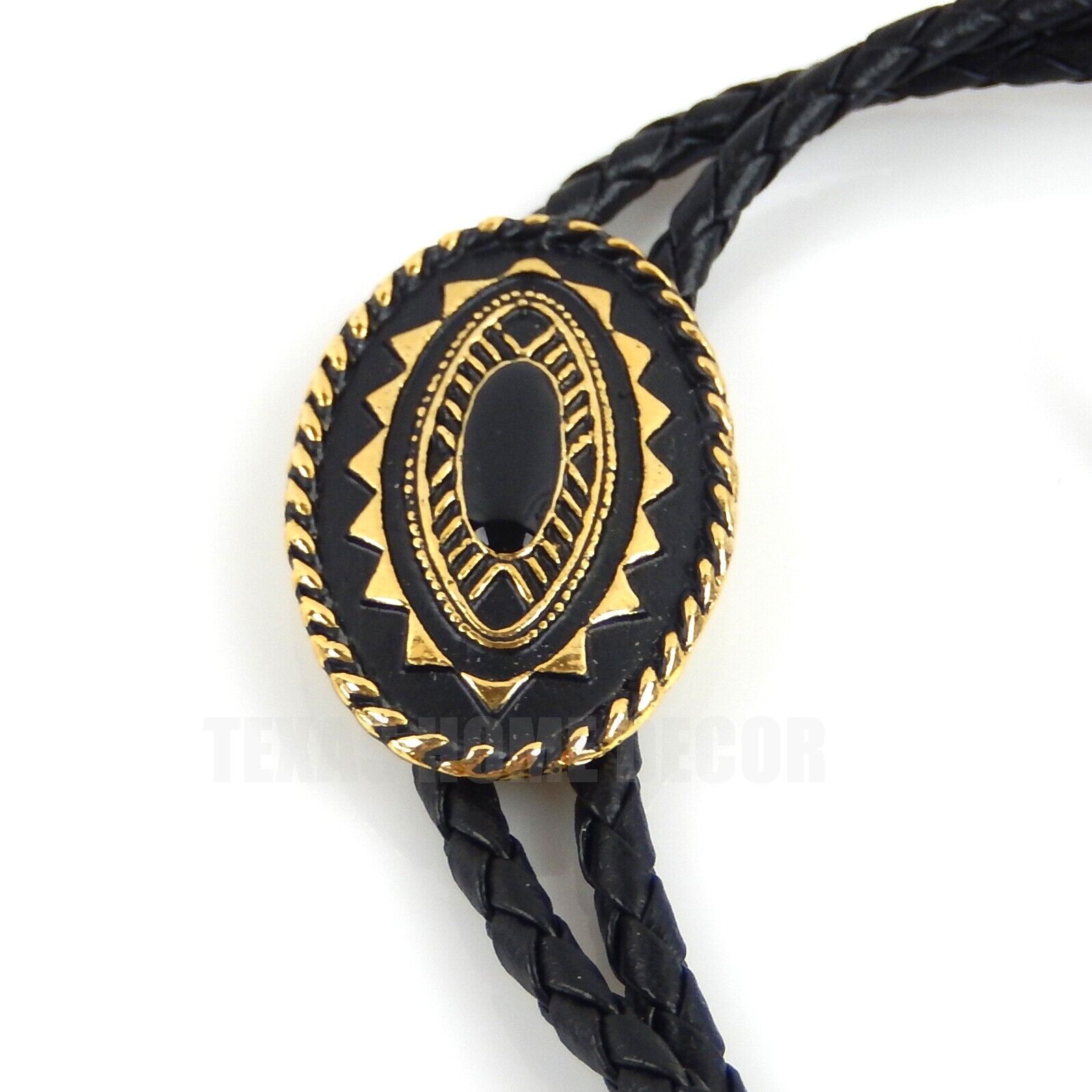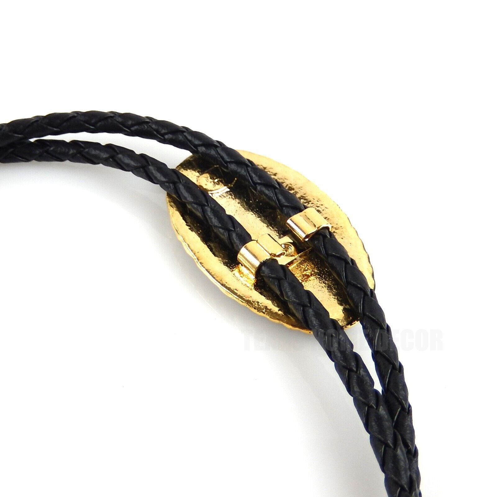 Oval Bolo Tie Real Gold Plated 36" Adjustable Braided Black Cord Made In USA