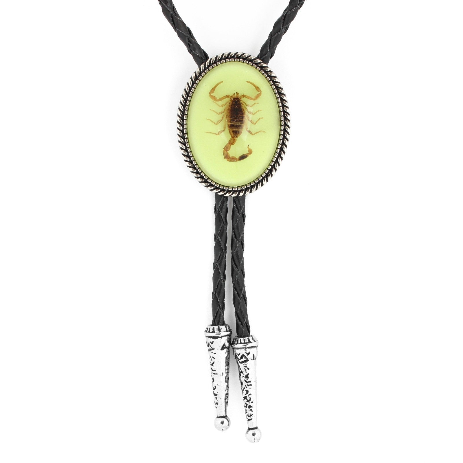 Oval Glow In The Dark Real Scorpion Alacran Bolo Tie 40 in Adjustable Black Cord