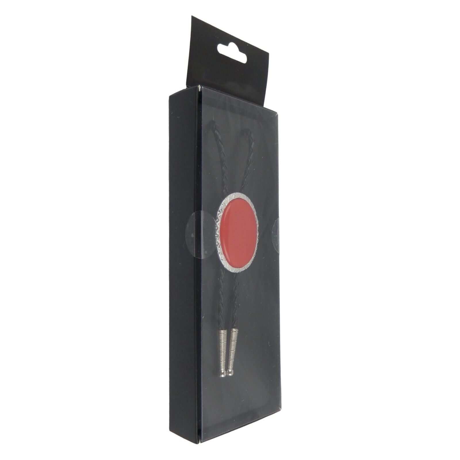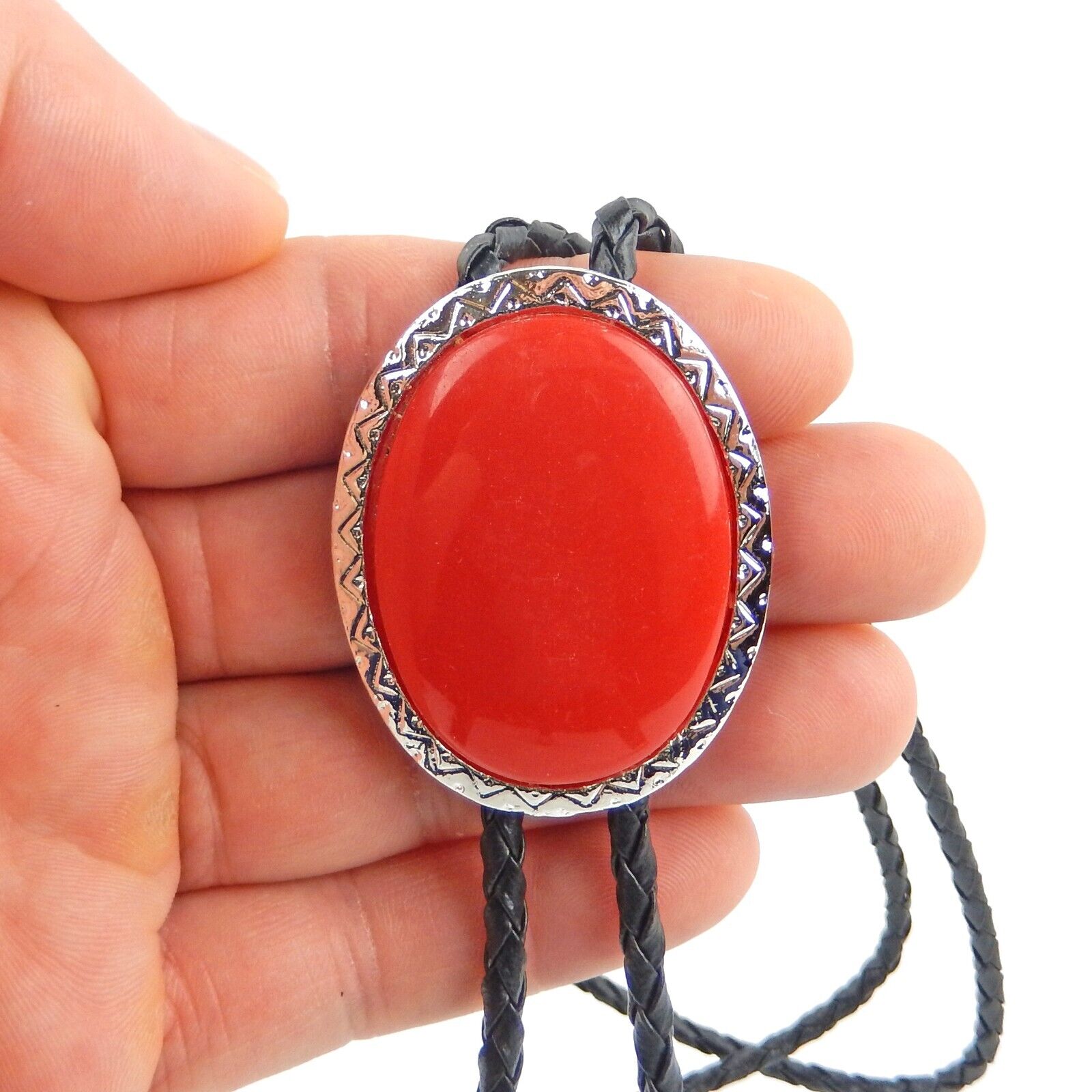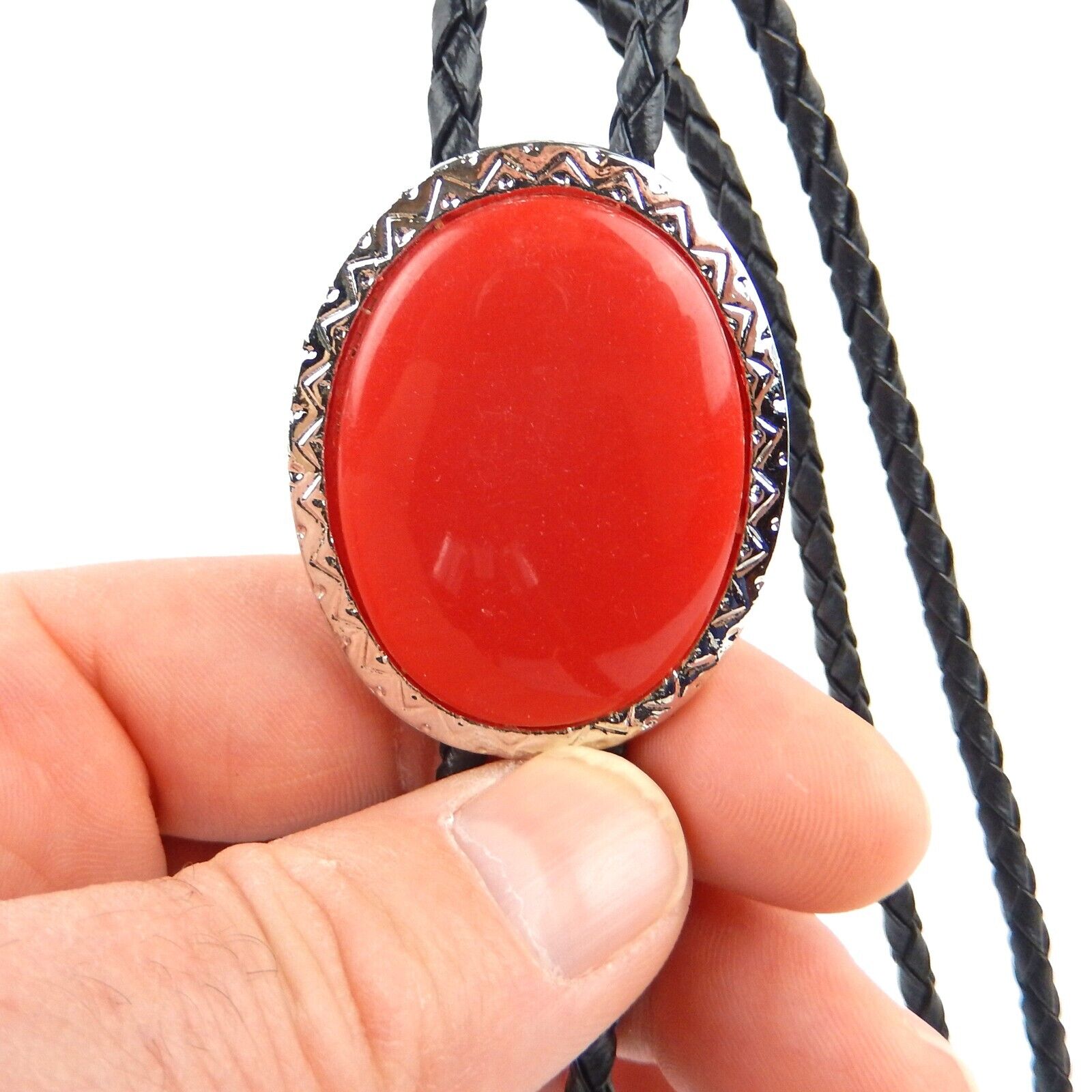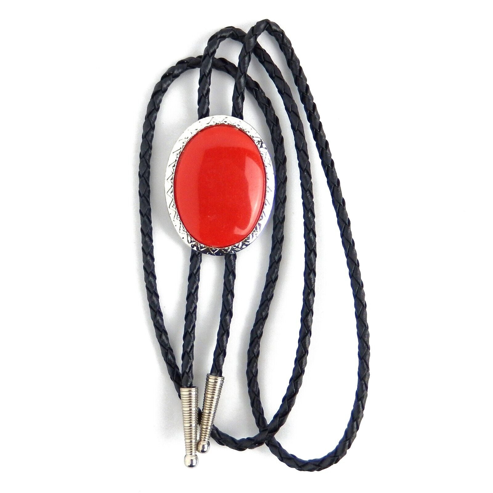 Oval Red Stone Antique Silver Bolo Tie 36 inch Adjustable Cord Made in USA