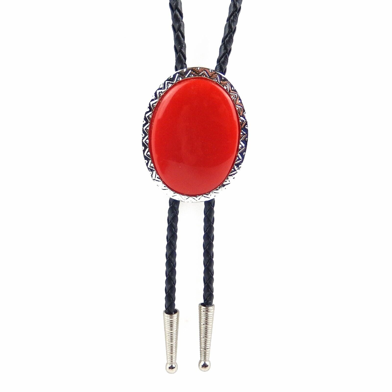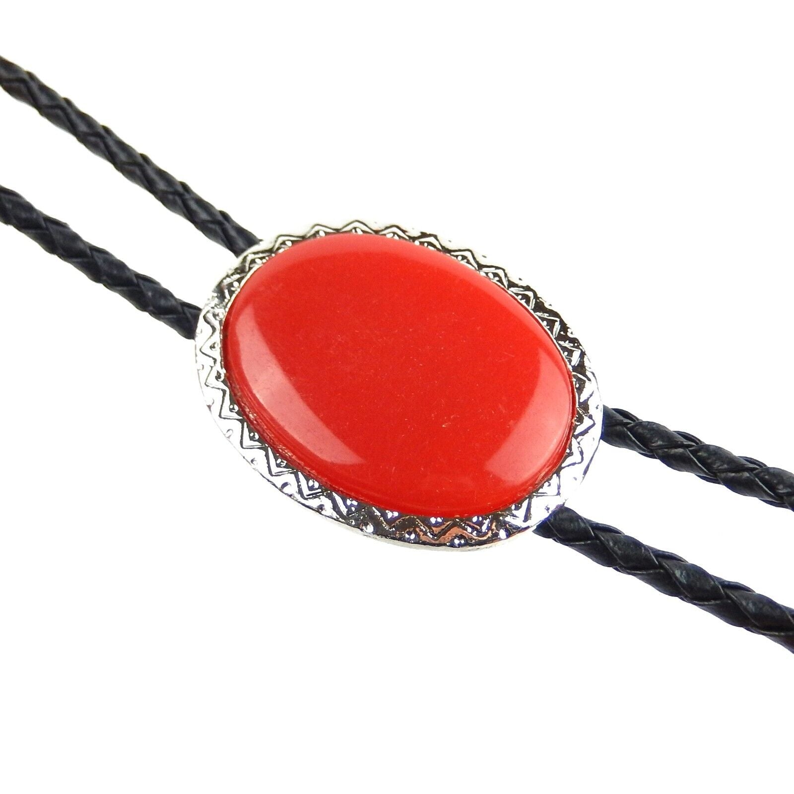 Oval Red Stone Antique Silver Bolo Tie 36 inch Cord #BT-352