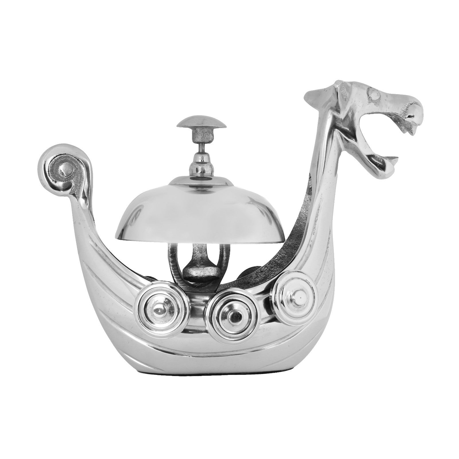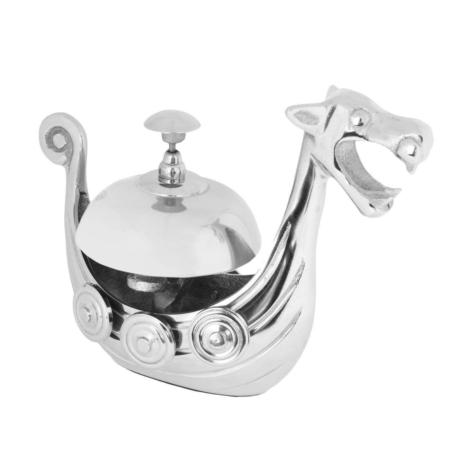 Polished Aluminum Metal Viking Dragon Ship Help Desk Counter Bell Collectible
