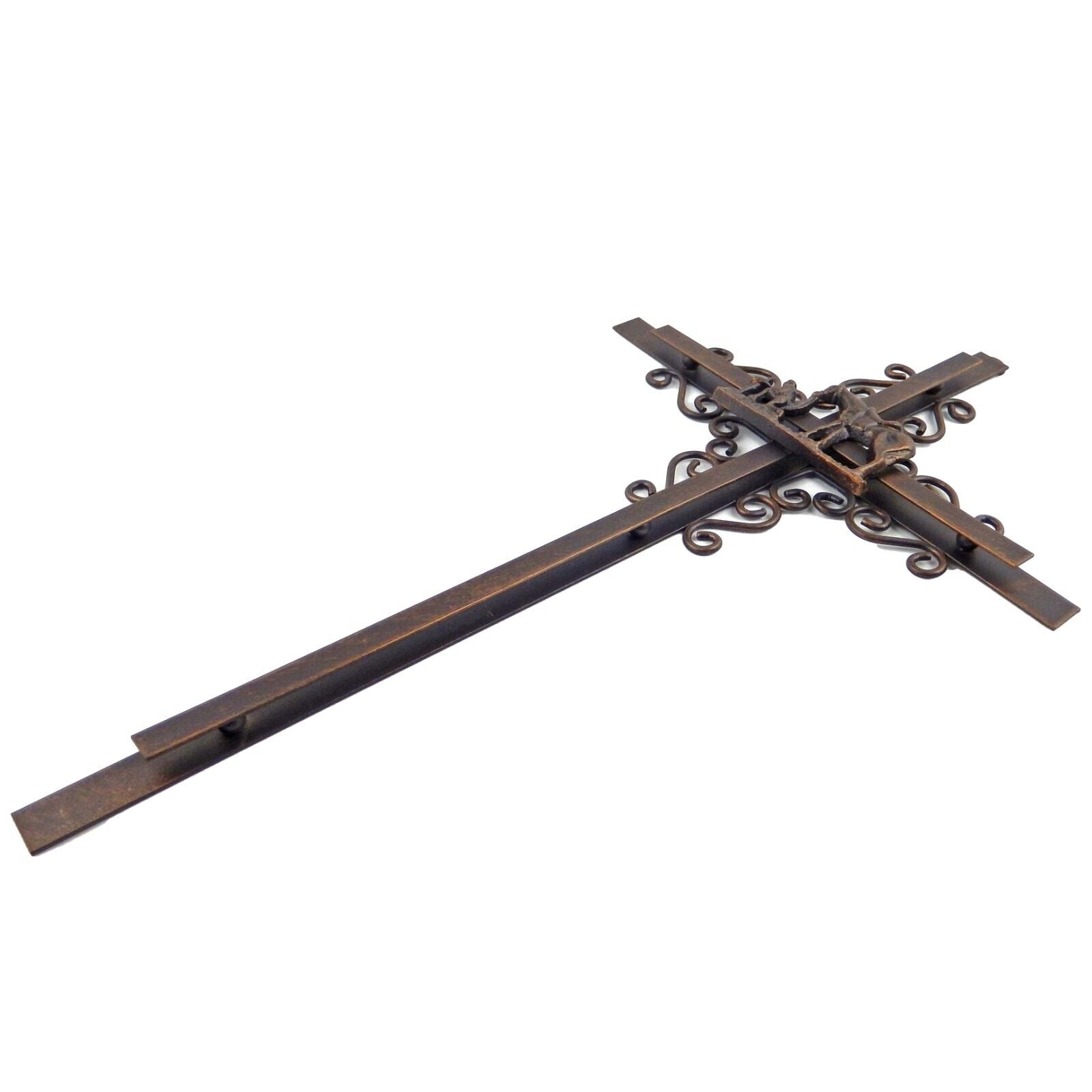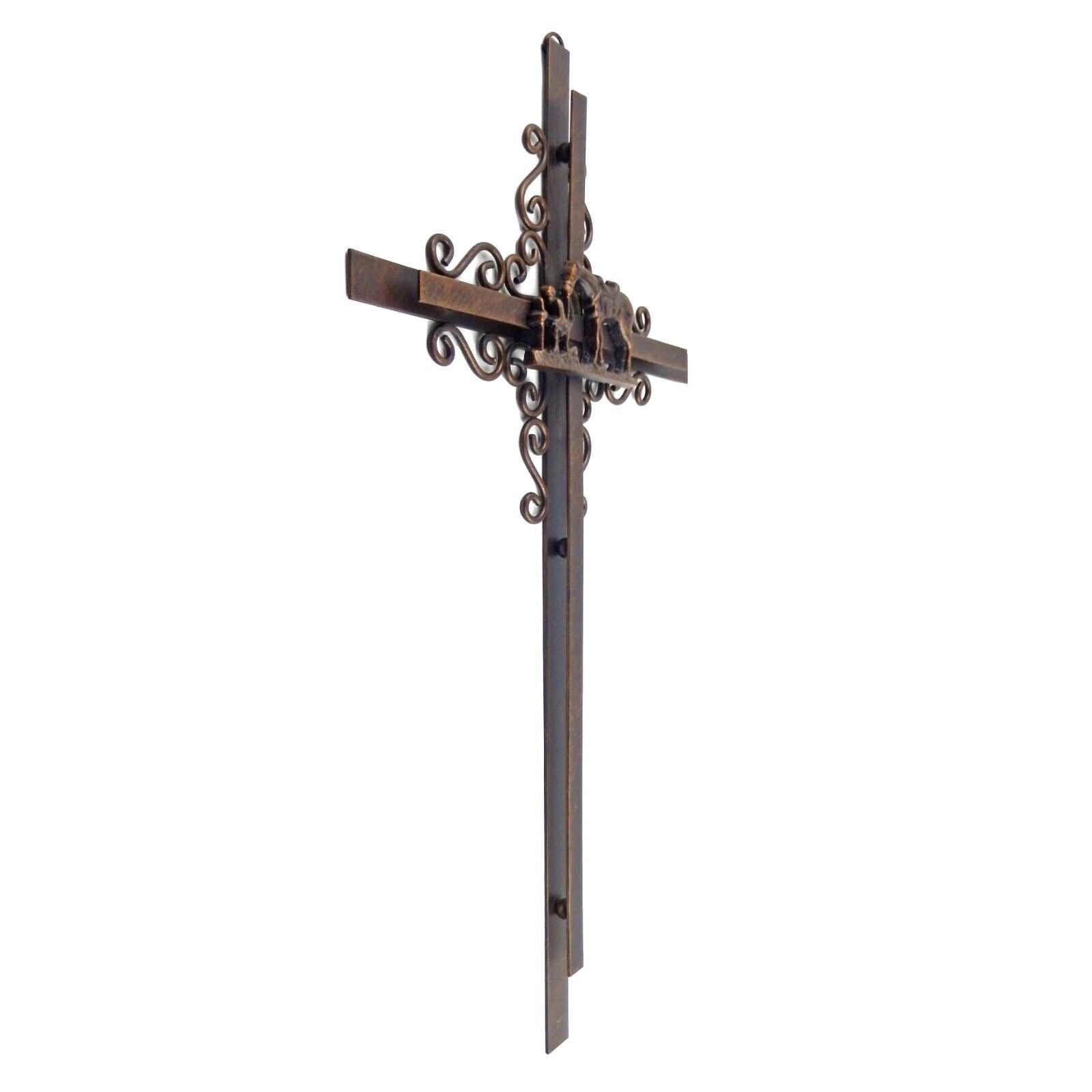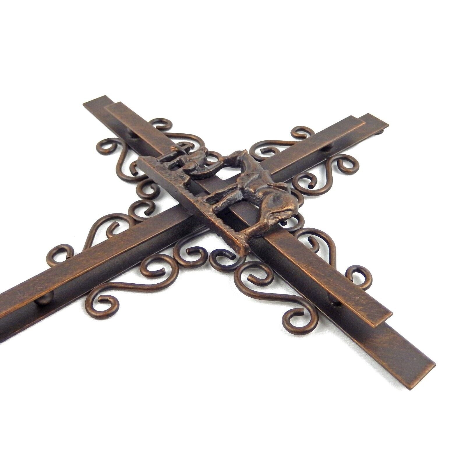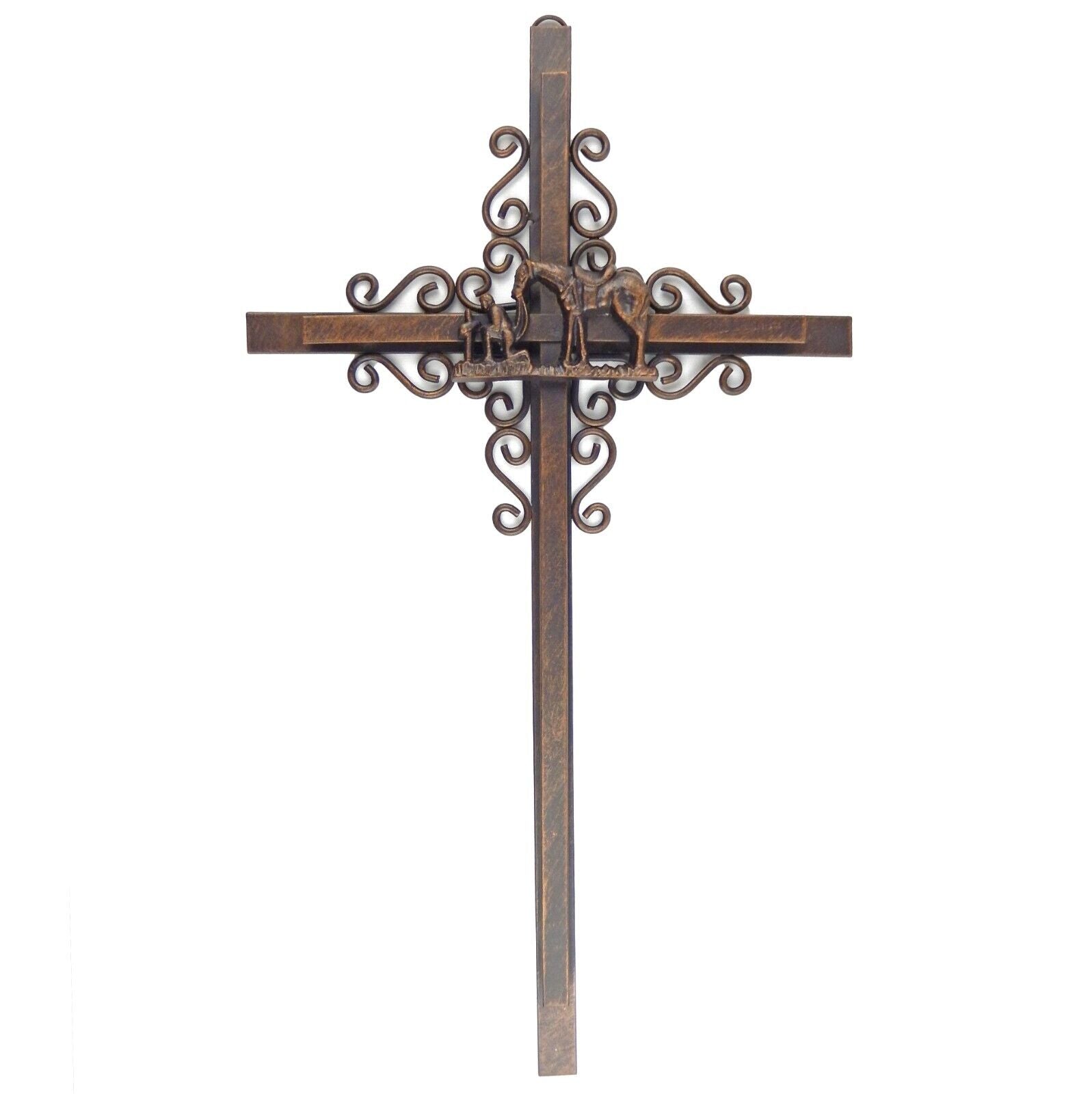 Praying Cowboy with Horse Wall Cross Metal Layered Scrolls Rustic Copper 15.5 in