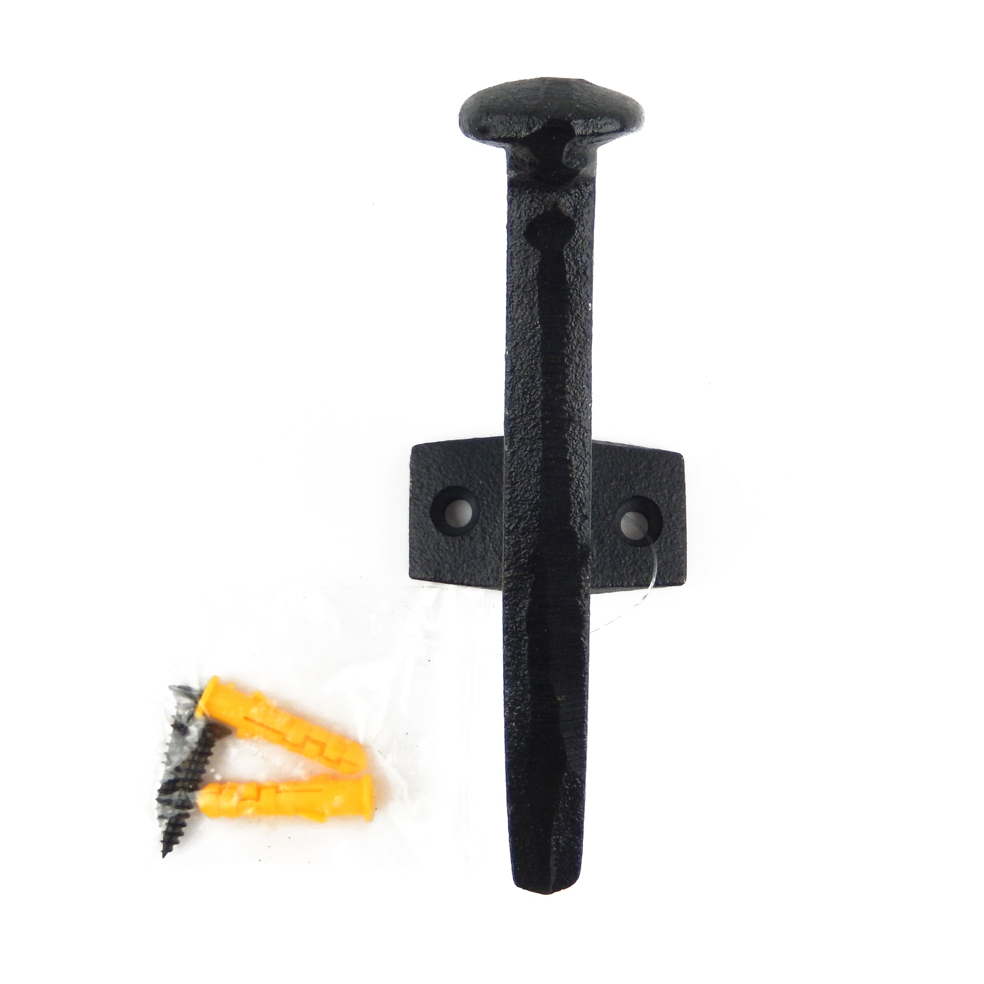 Cast Iron Black Railroad Spike Wall Hook Heavy Duty Industrial Coat Towel Hanger