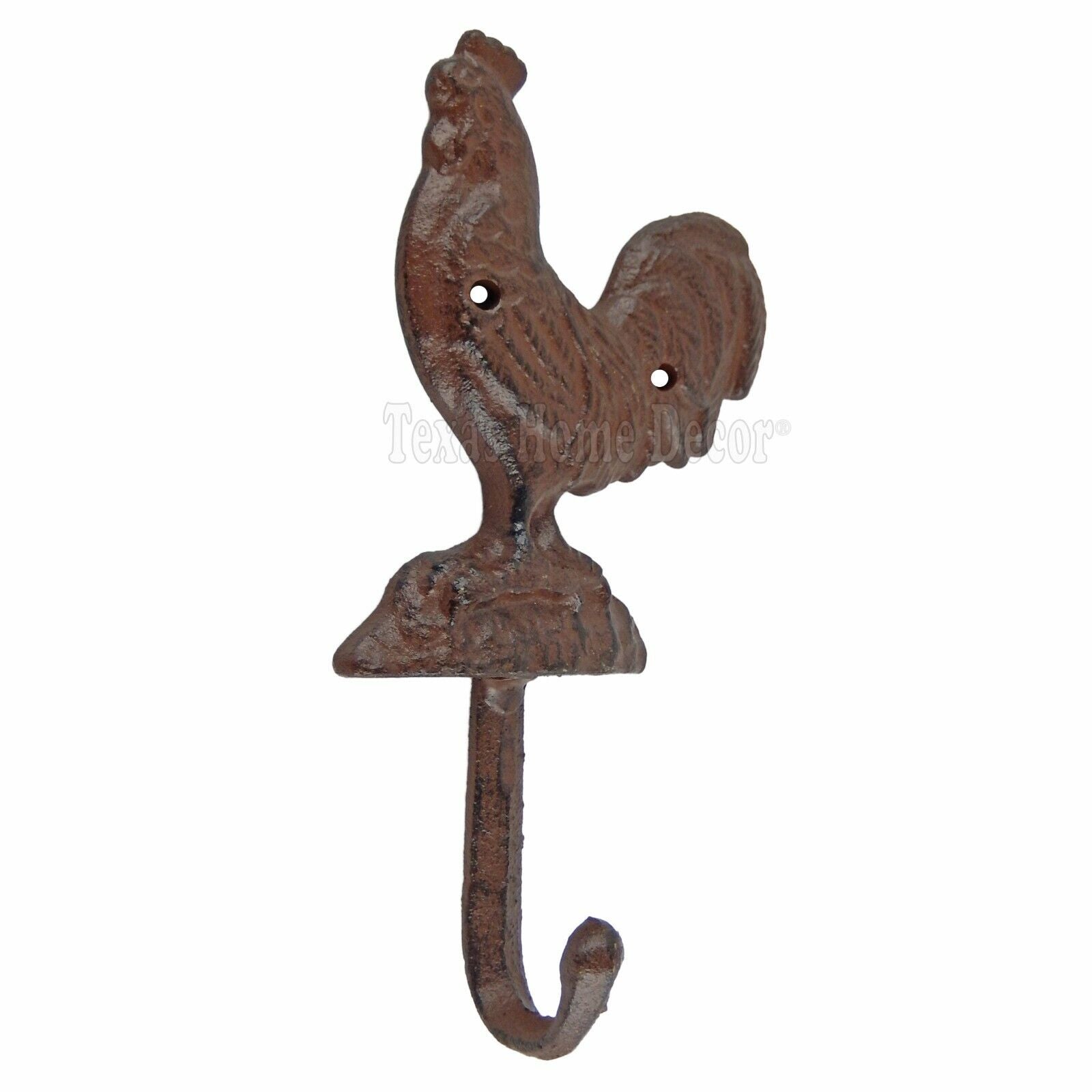 Rooster Key Wall Hook Towel Hat Coat Hanger Rustic Cast Iron Antique Style