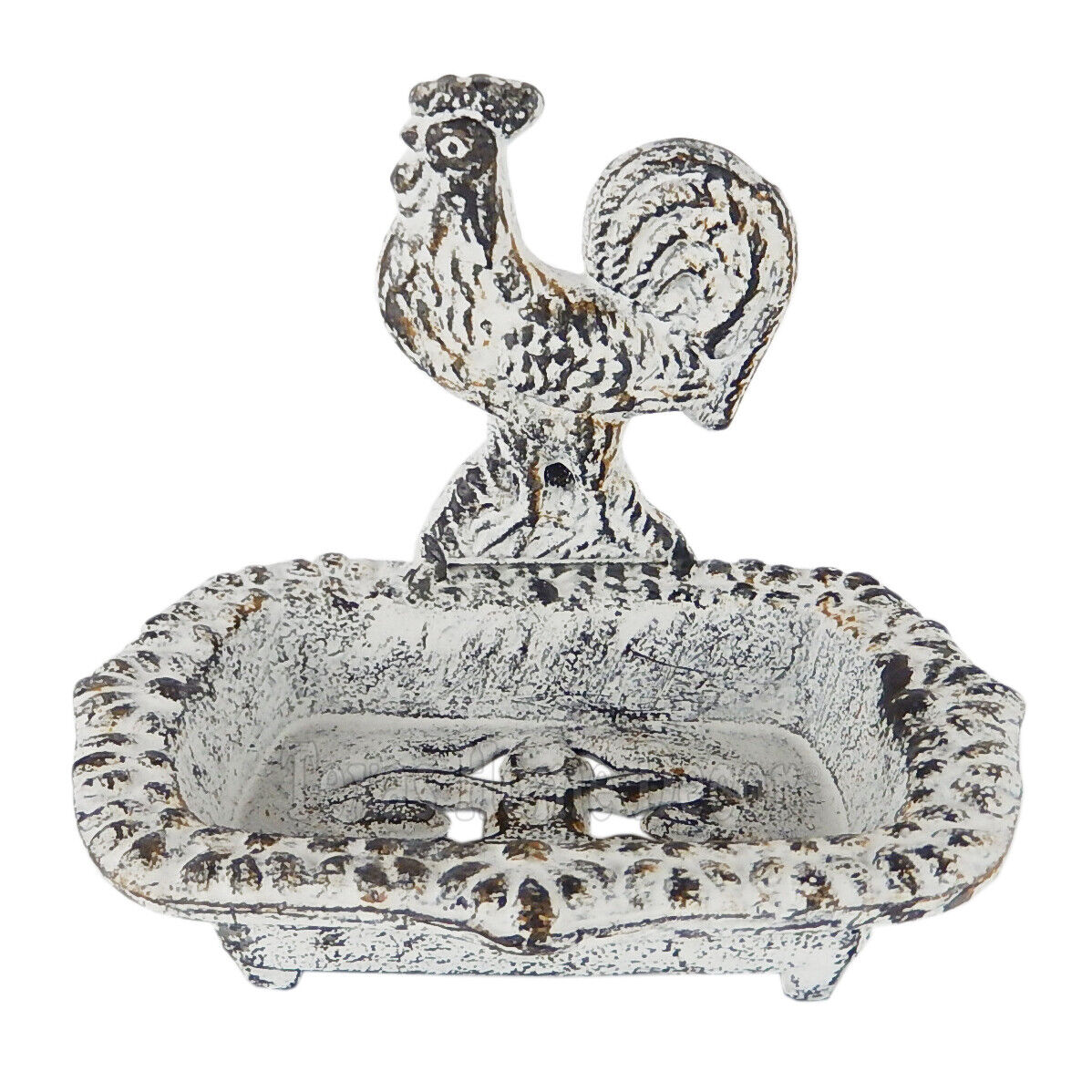Rooster Soap Dish Cast Iron Country Decor Rustic Off-White Antique Style