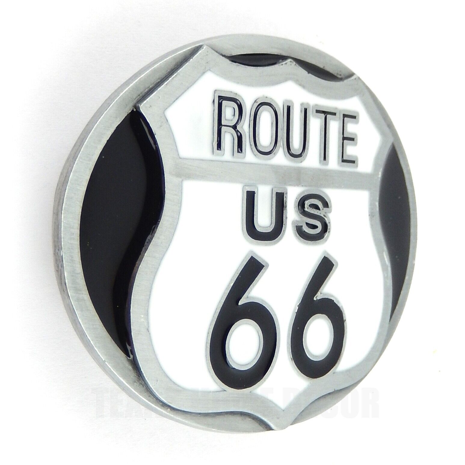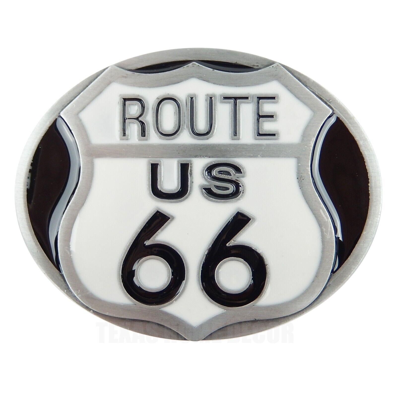 Route US 66 Belt Buckle Antique Silver Glossy Black &White Enamel Fits 1.5" Belt