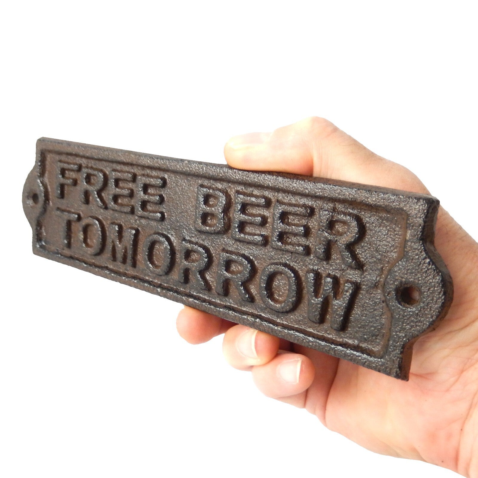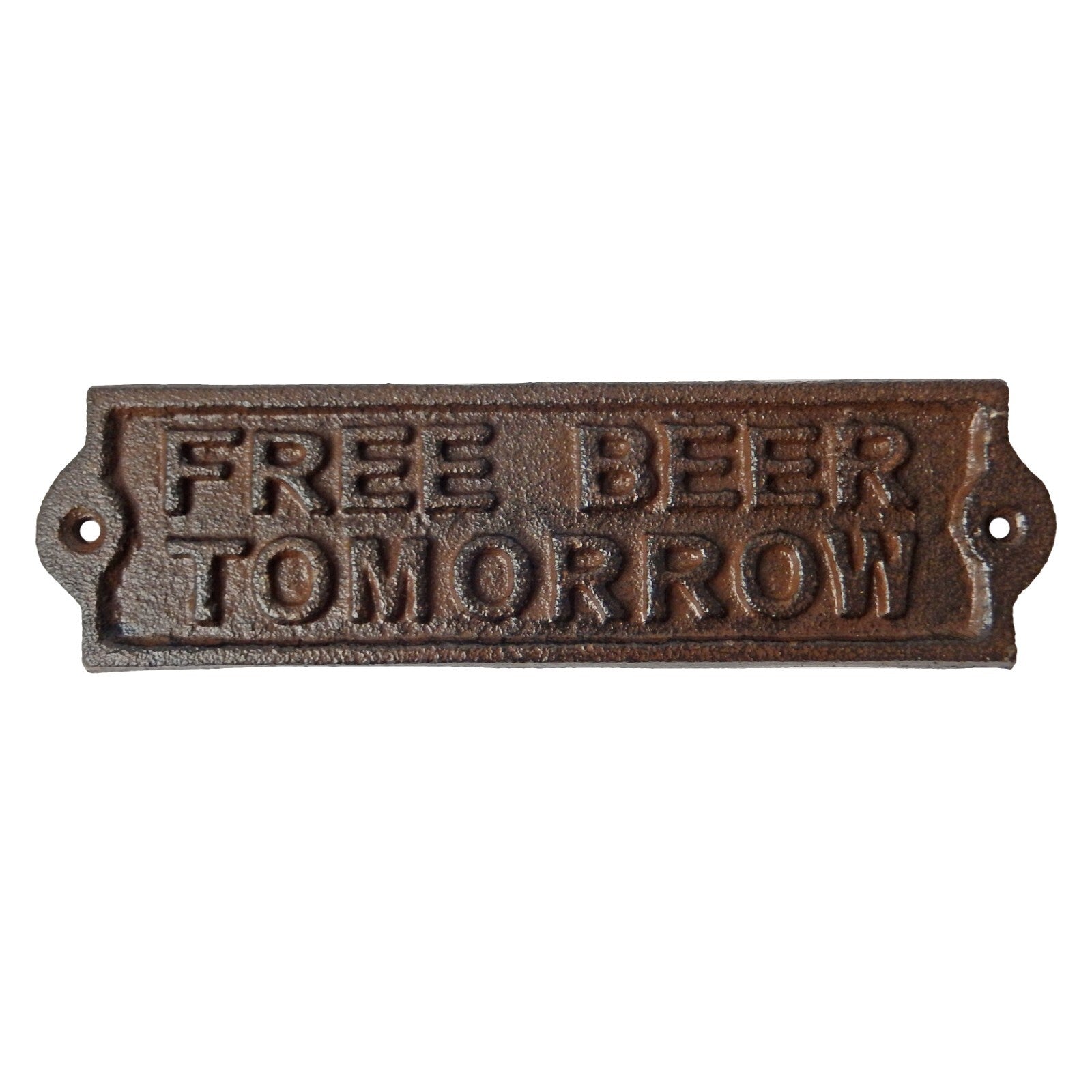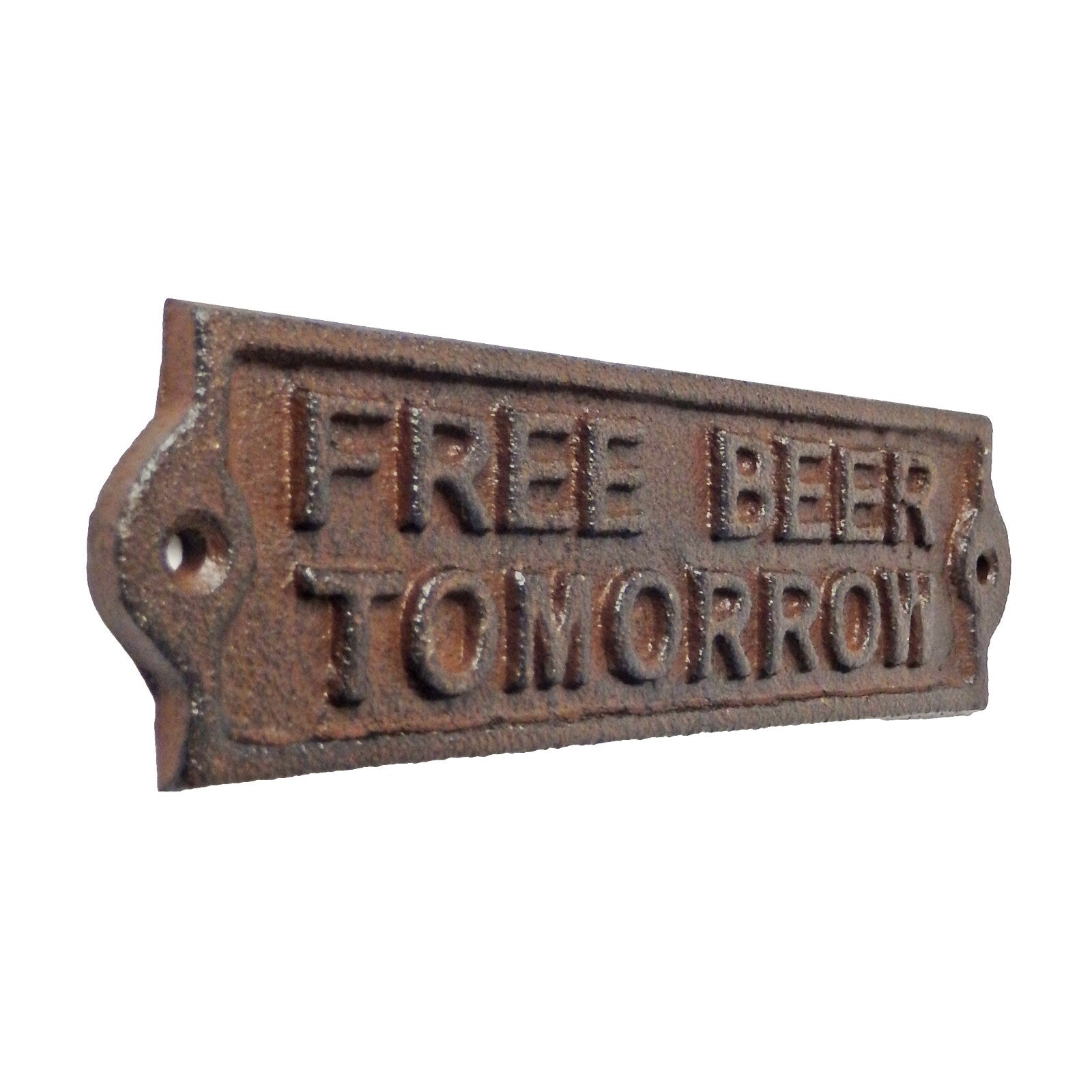 Rustic Brown Cast Iron Free Beer Tomorrow Wall Decor Sign Bar Man Cave 8 inch