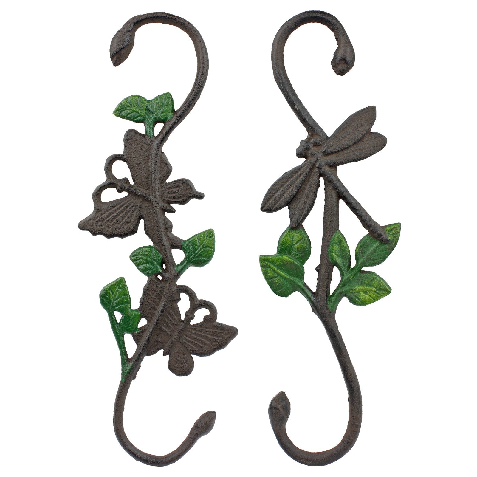 Rustic Cast Iron Butterfly & Dragonfly Set Garden Plant Hanger S Hooks 12 inch
