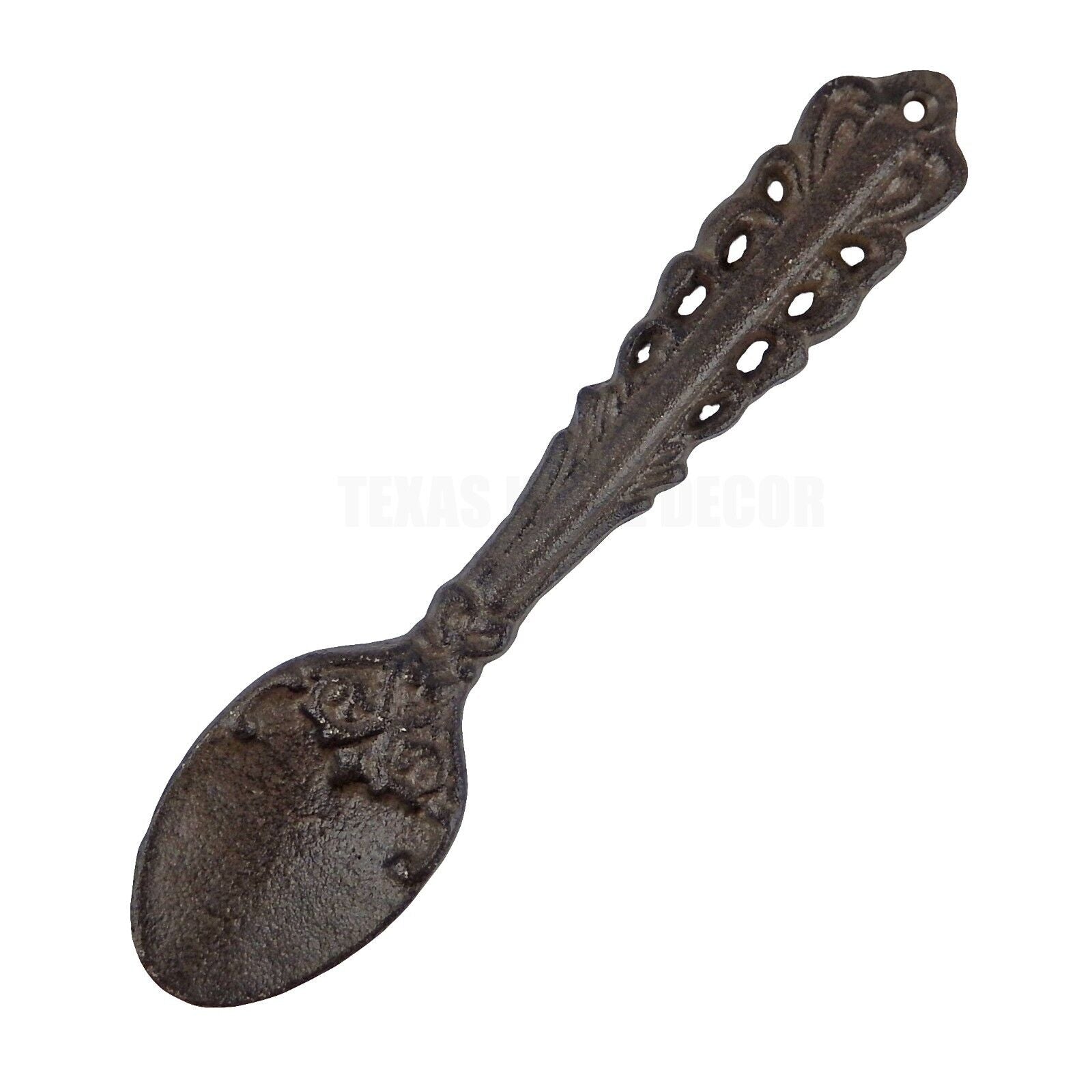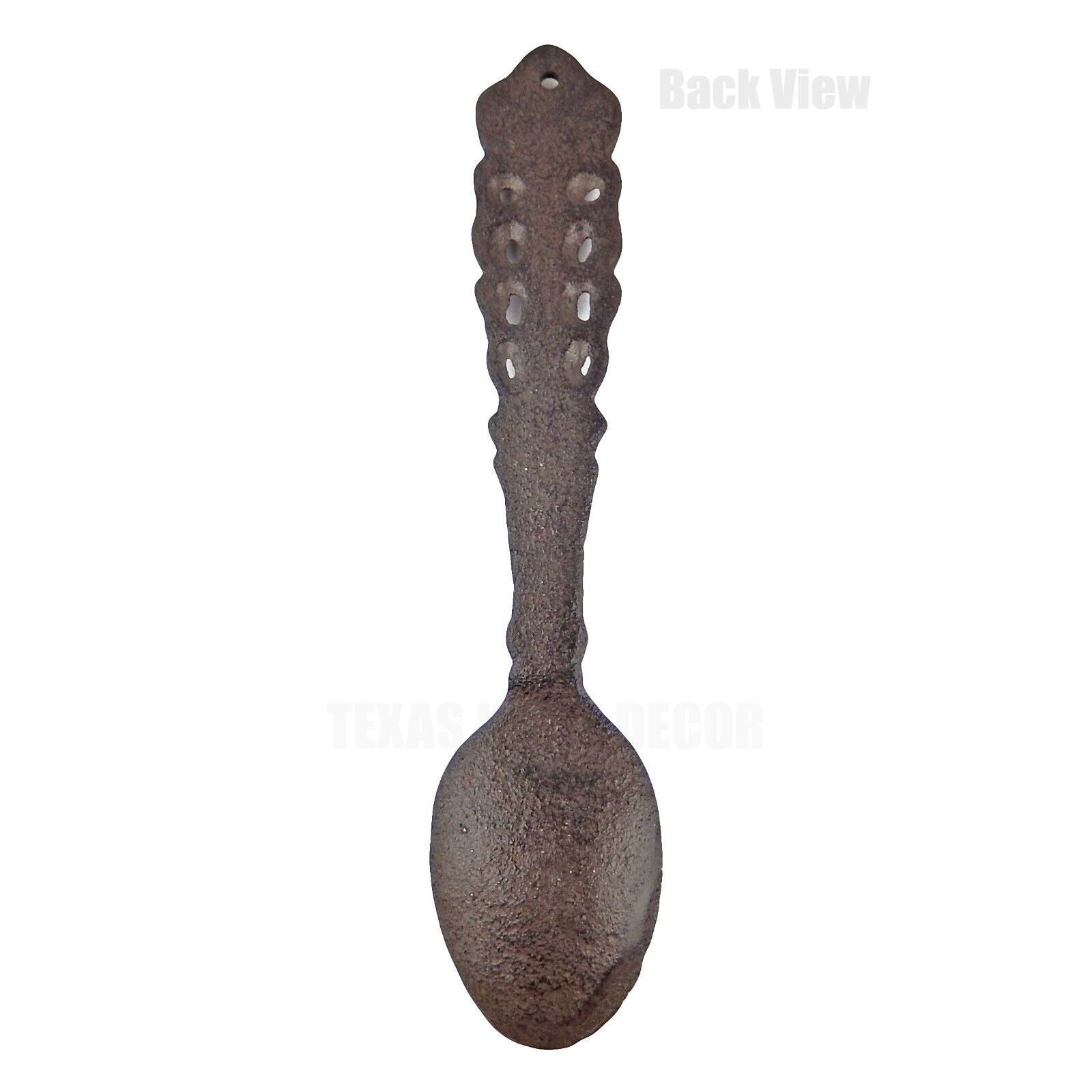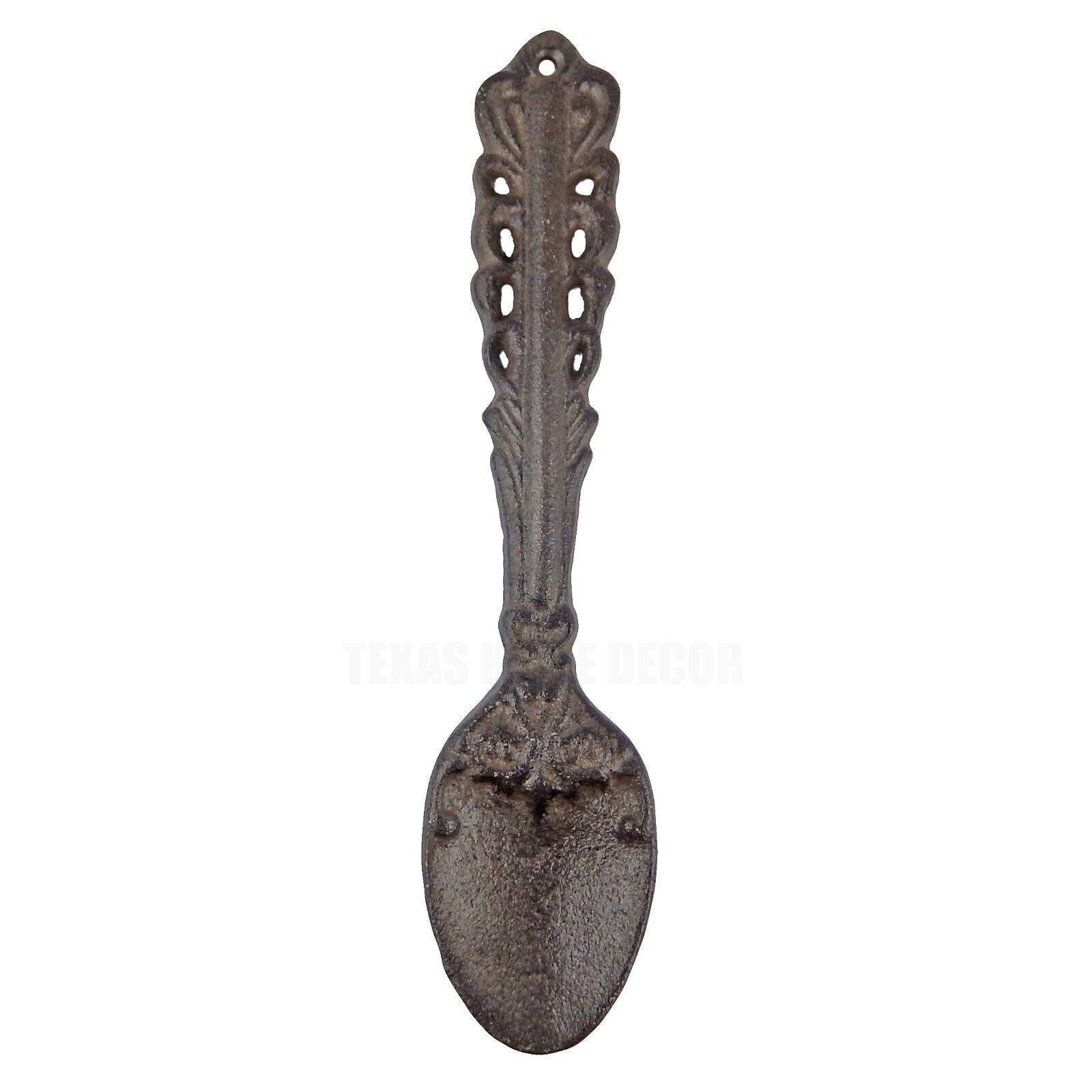Rustic Cast Iron Decorative Spoon Kitchen Wall Decor Heavy Duty Floral Accents