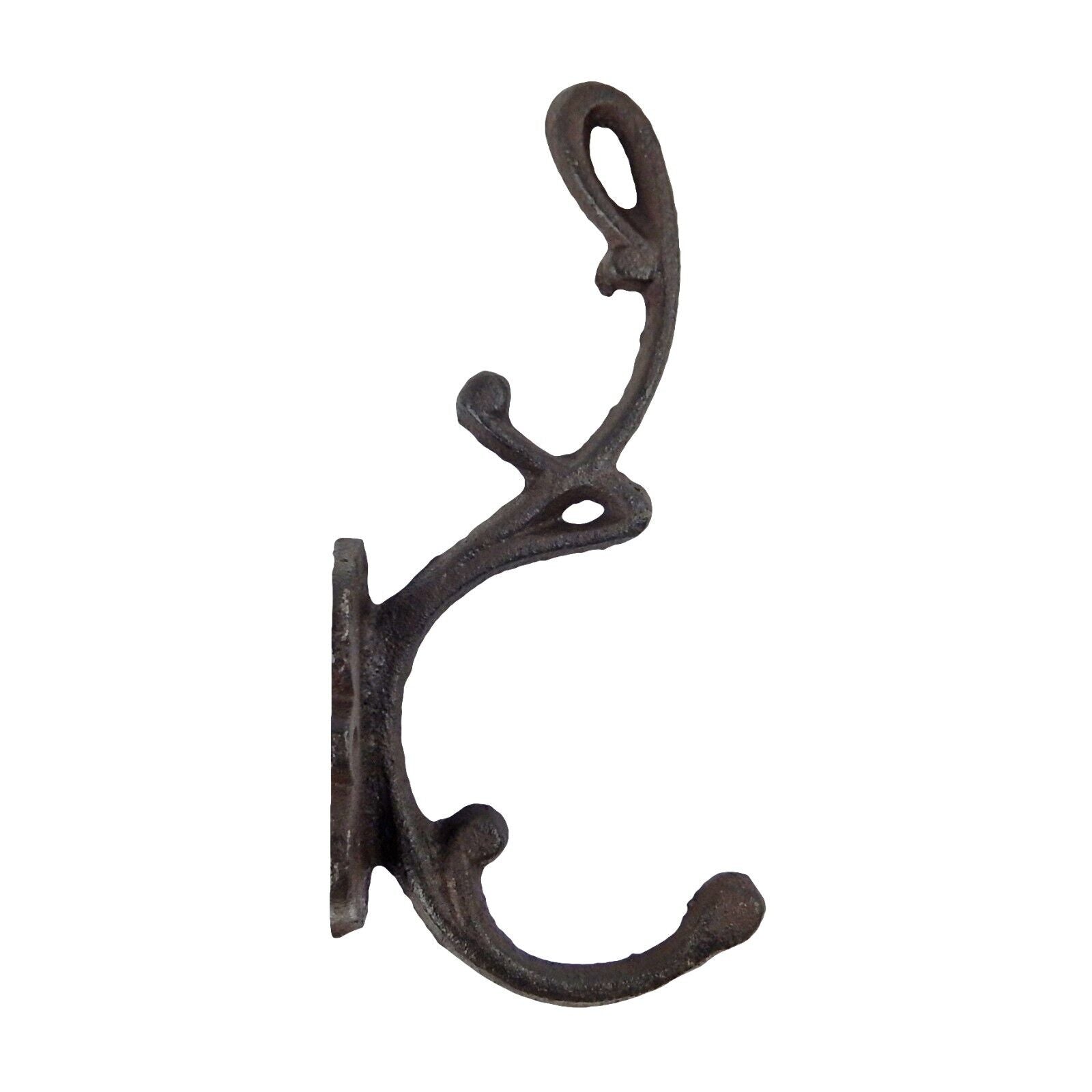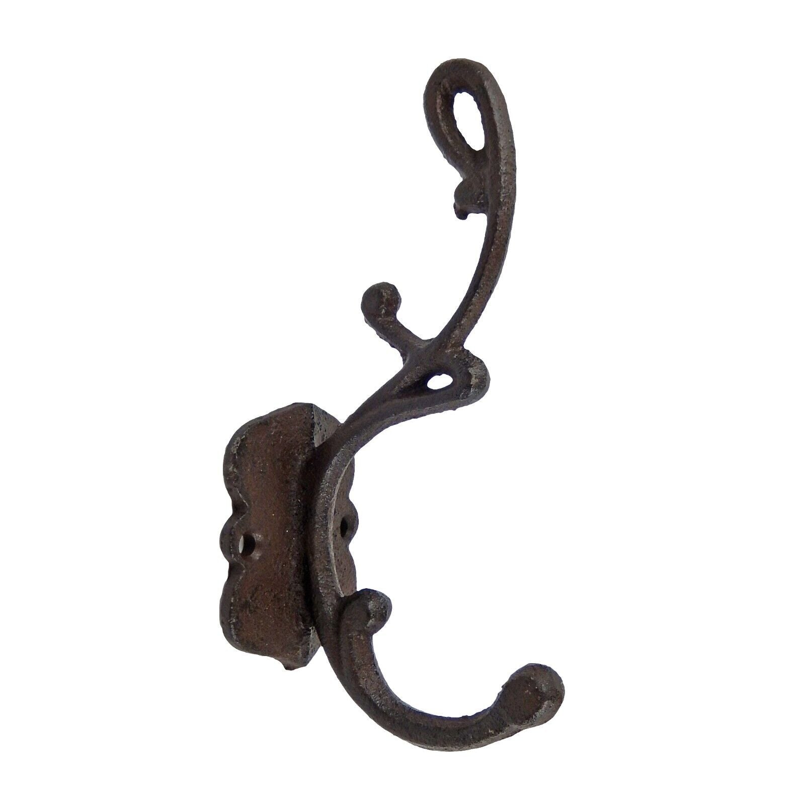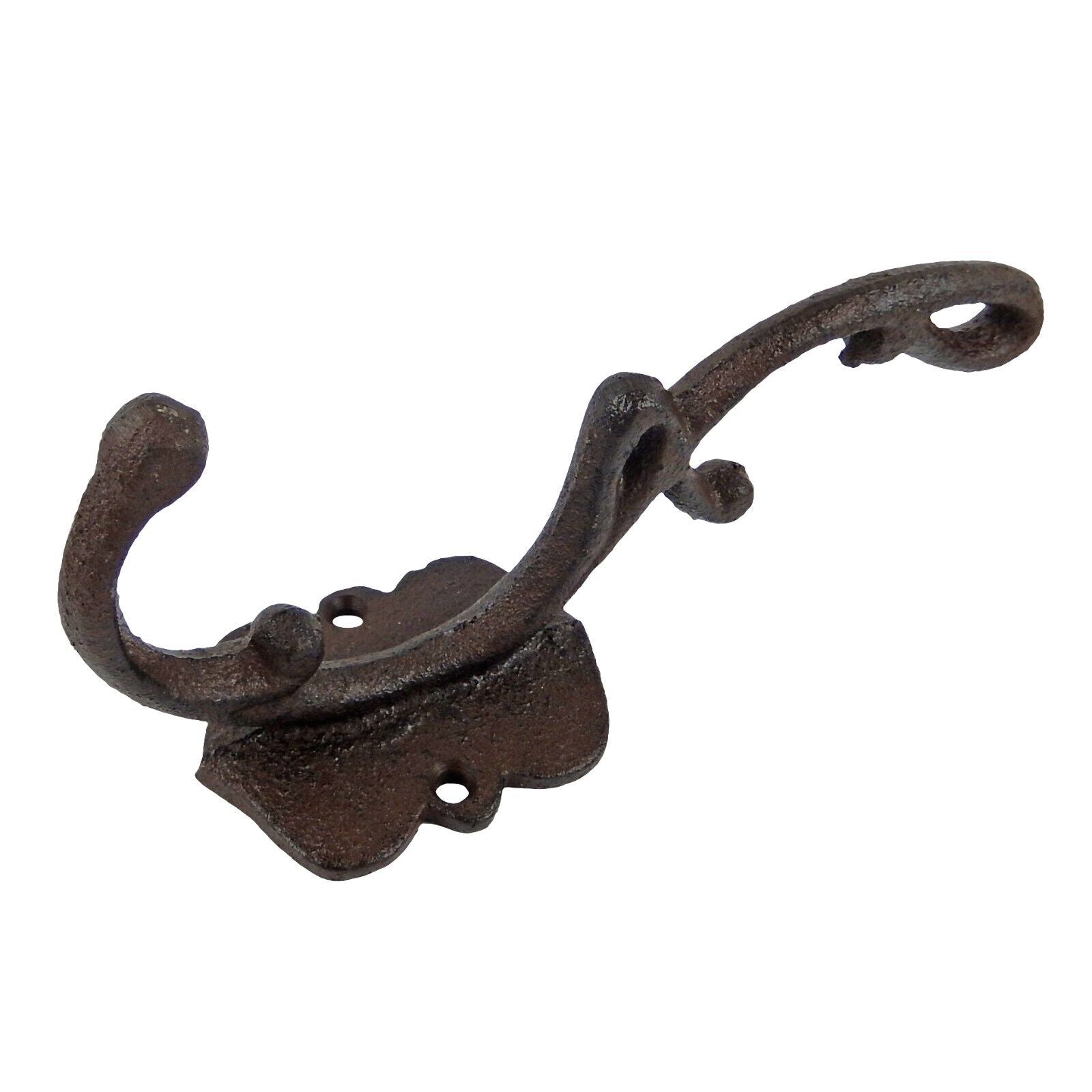 Rustic Cast Iron Double Wall Hook Key Towel Coat Robe Door Hanger Brown 6.5 inch