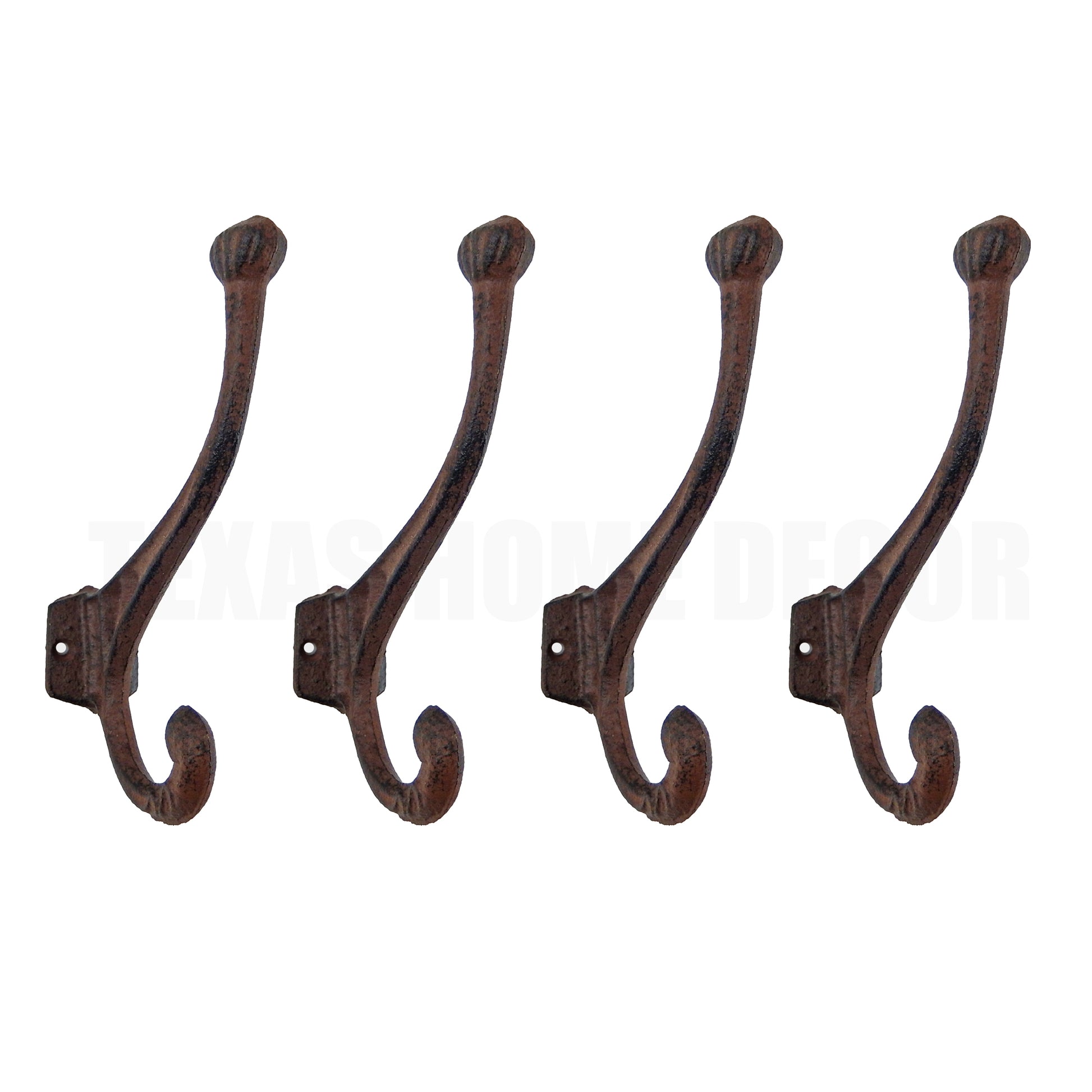 Rustic Cast Iron Vines Double Wall Hooks Towel Hat Coat Purse Hanger (Pack of 4)
