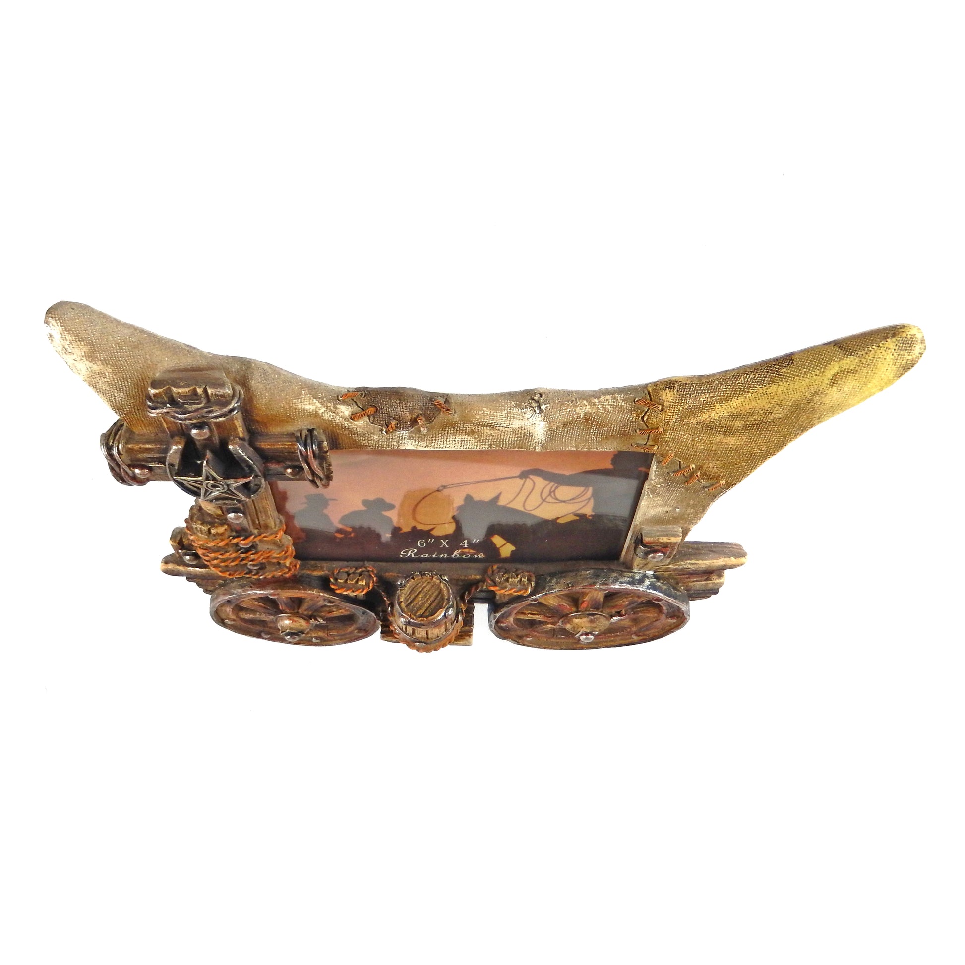 Western Wagon Wheel Cross Barrel Picture Frame 6 x 4" #06784
