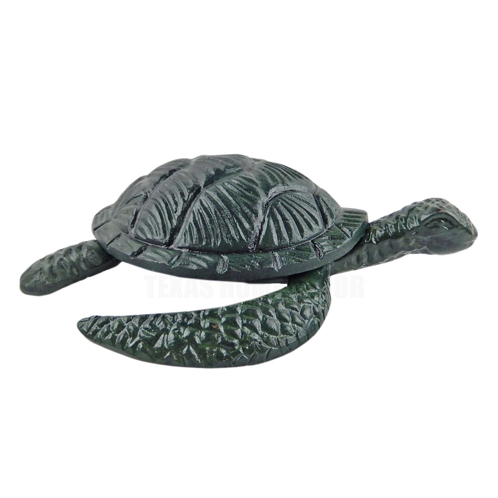 Sea Turtle Garden Figurine Statue Aluminum Nautical Beach House Decor Dark Green