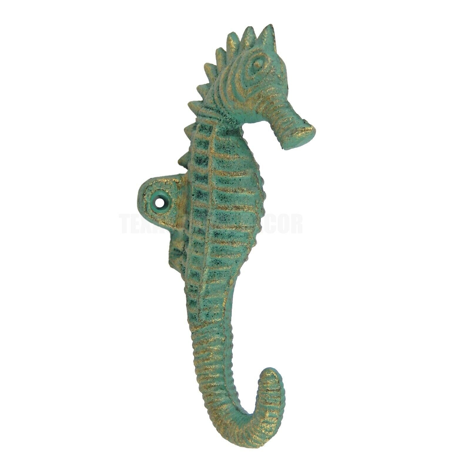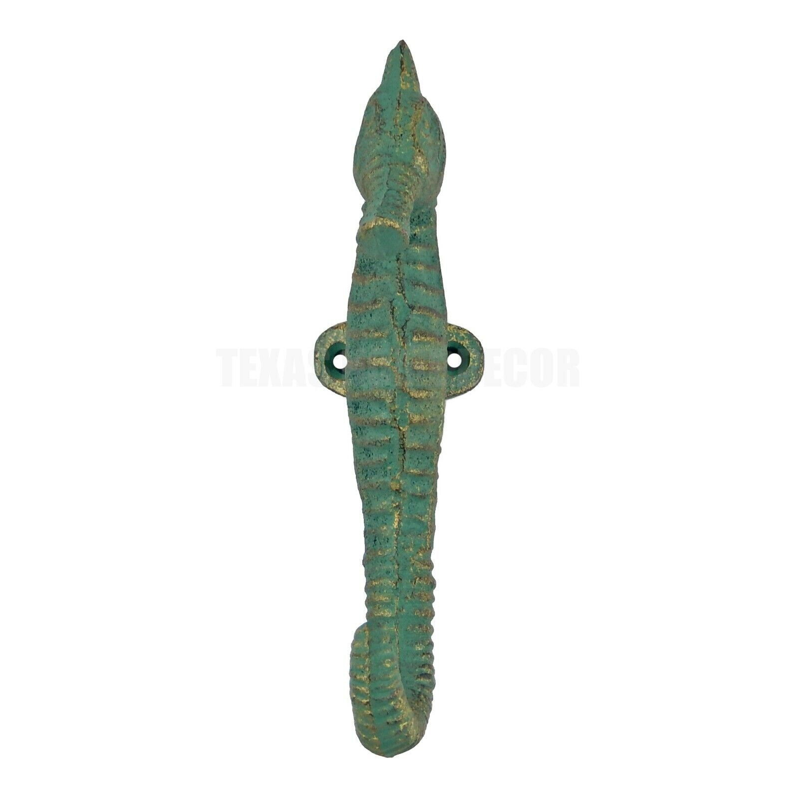 Seahorse Wall Hook Cast Iron Rustic Antique Gold Green #6592
