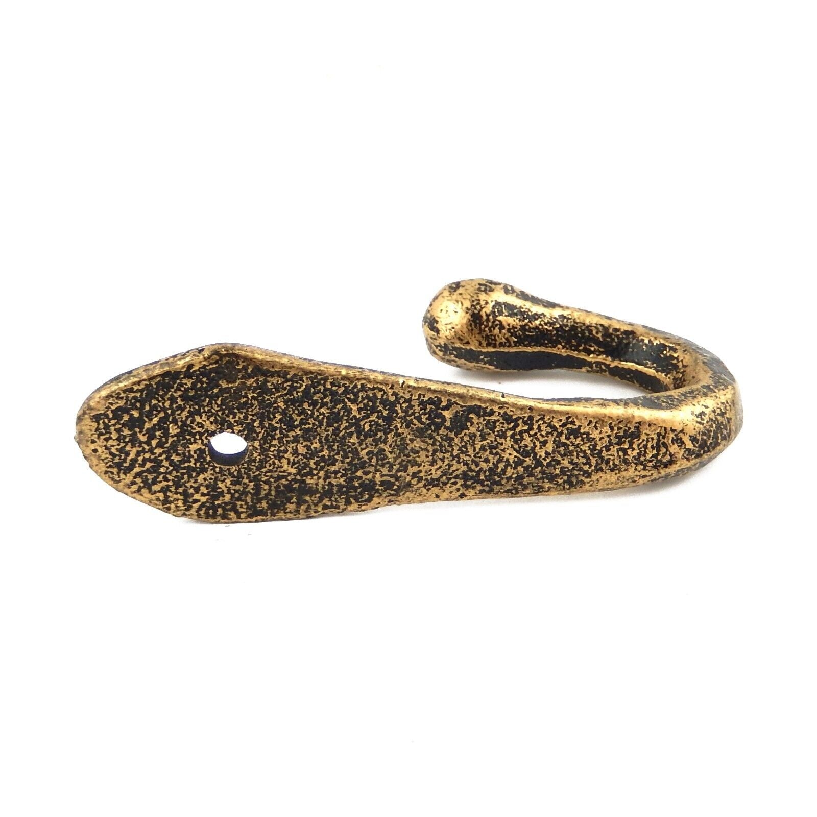 Simple Wall Hook Door Towel Coat Purse Hanger Antique Gold Patina 4 inch