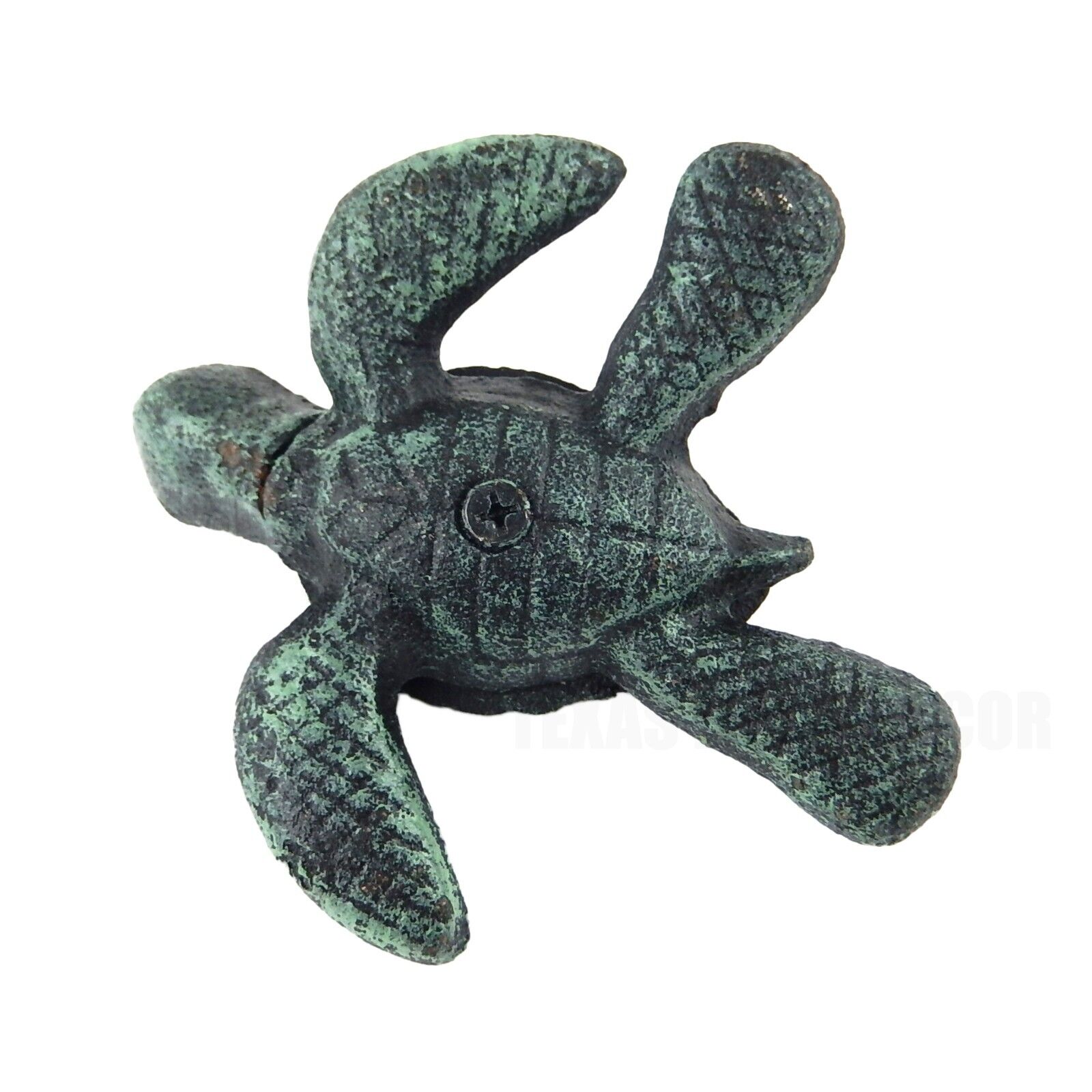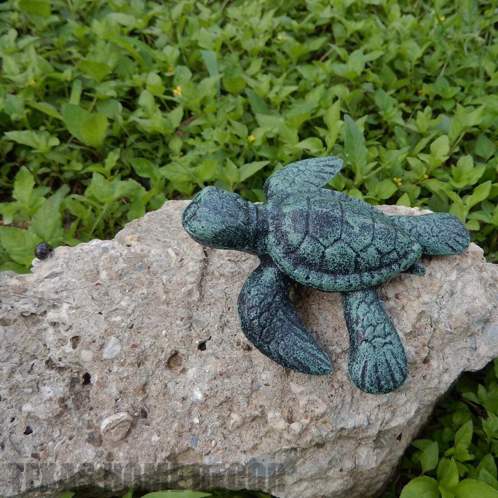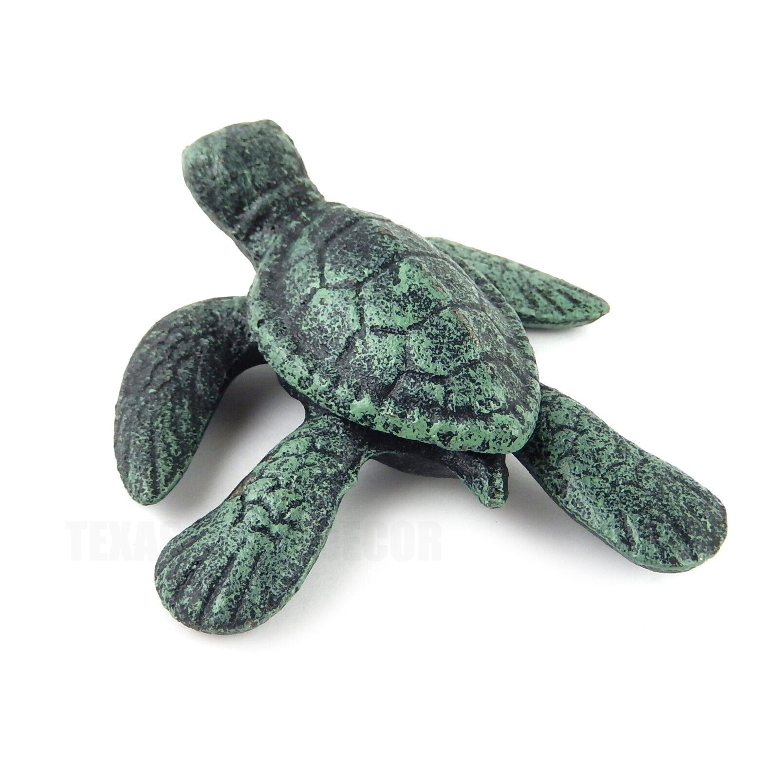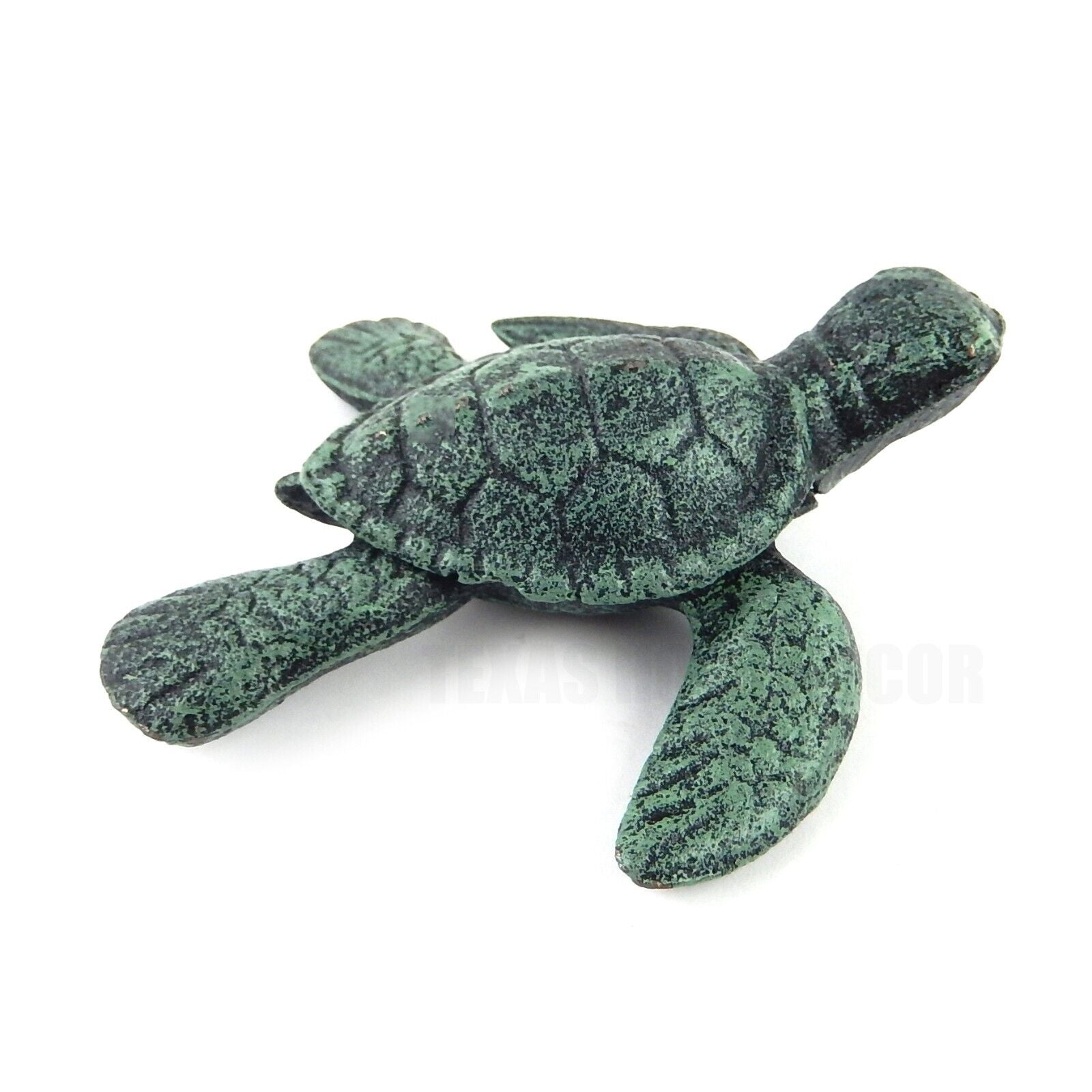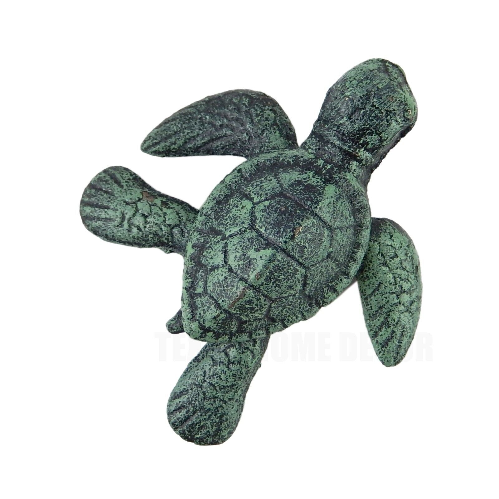 Small Cast Iron Baby Sea Turtle Figurine Statue Garden Pond Nautical Decor Green