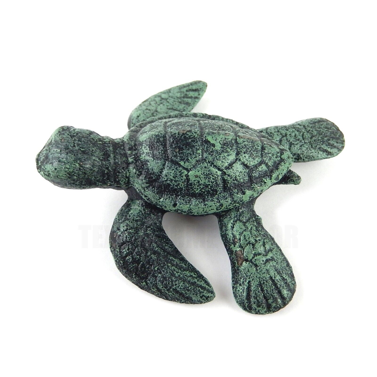 Small Cast Iron Baby Sea Turtle Figurine Statue Garden Pond Nautical Decor Green #A807V