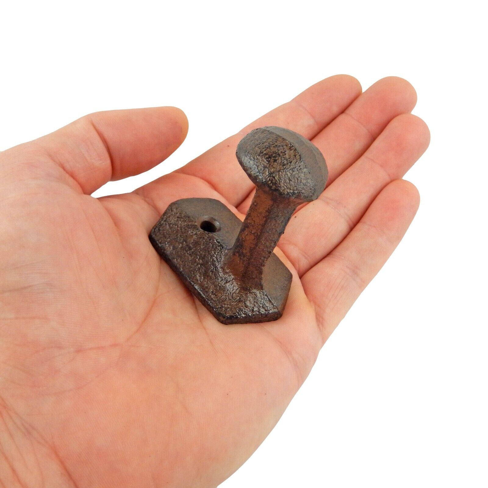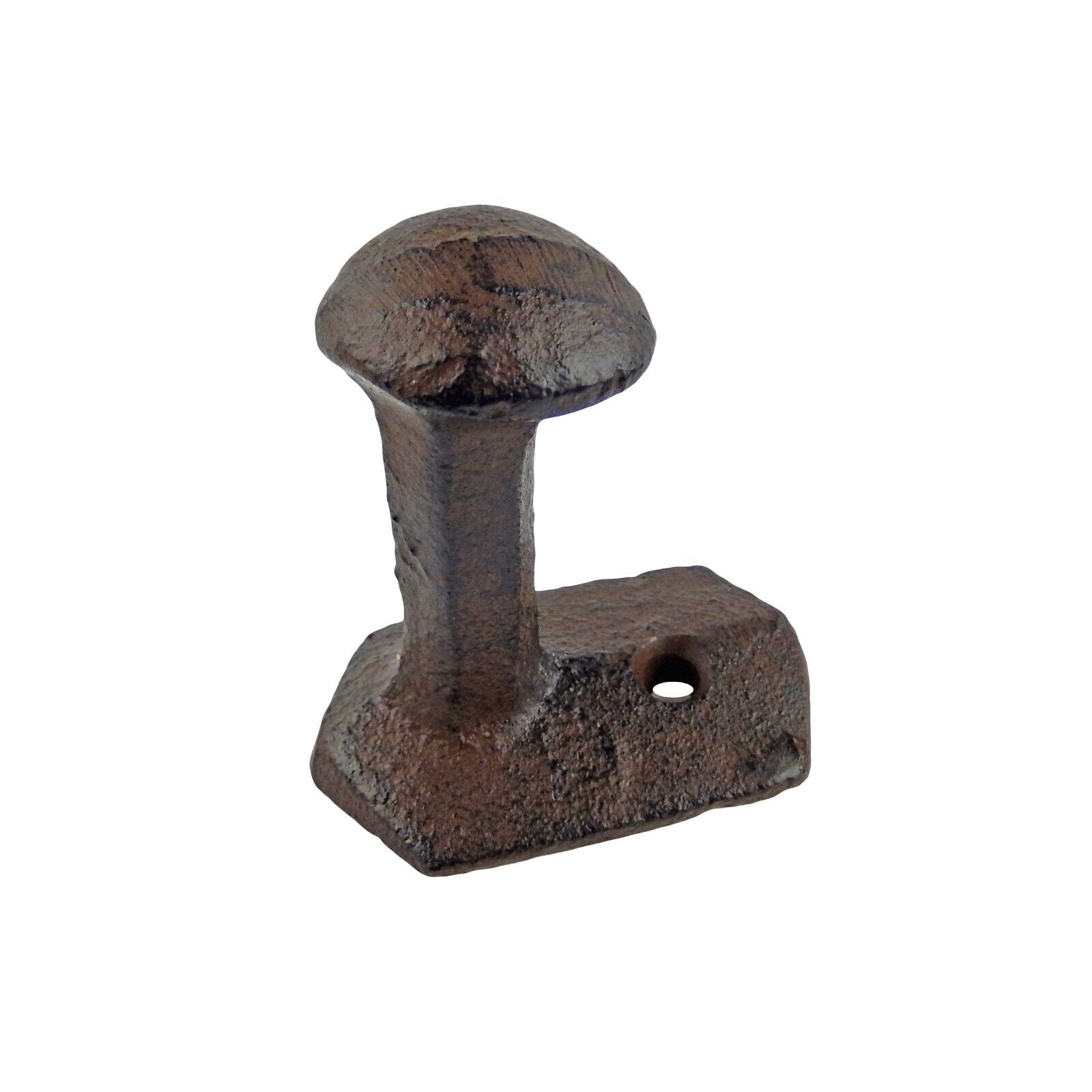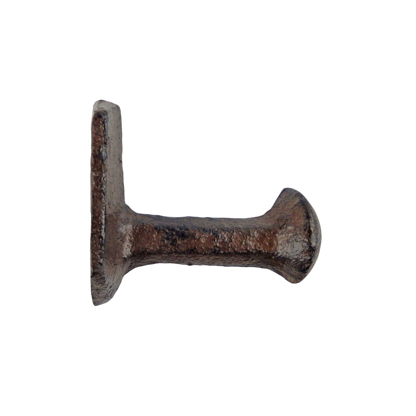 Small Cast Iron Railroad Spike Head Wall Hook Industrial Towel Coat Hanger Brown #UX-4636