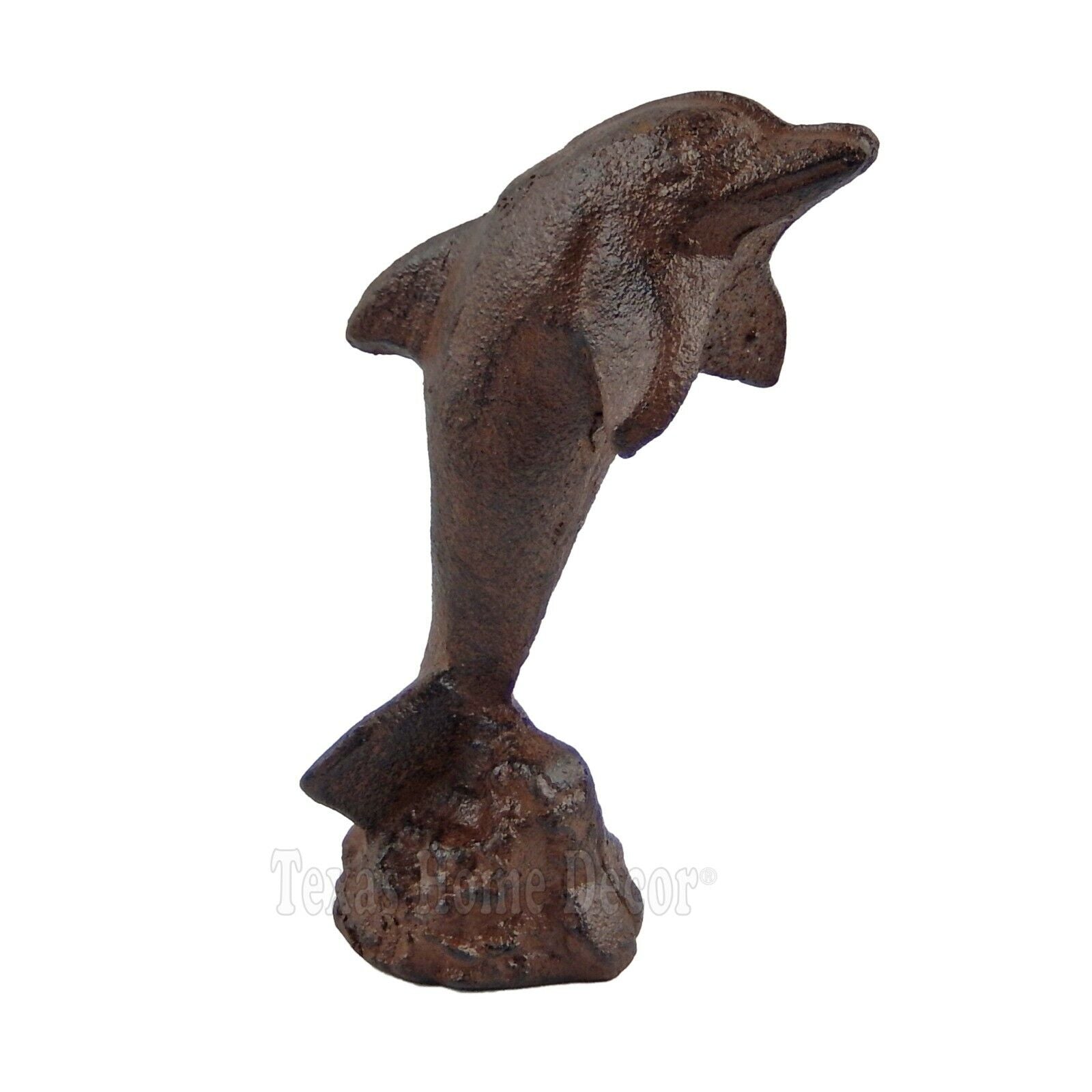 Small Leaping Dolphin Figurine Statue Cast Iron Nautical Sea Life Decor Brown