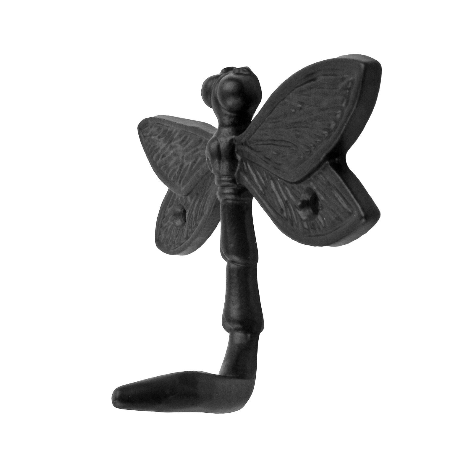 Small Metal Dragonfly Tail Wall Hook Key Towel Coat Hanger Black Powder Coated