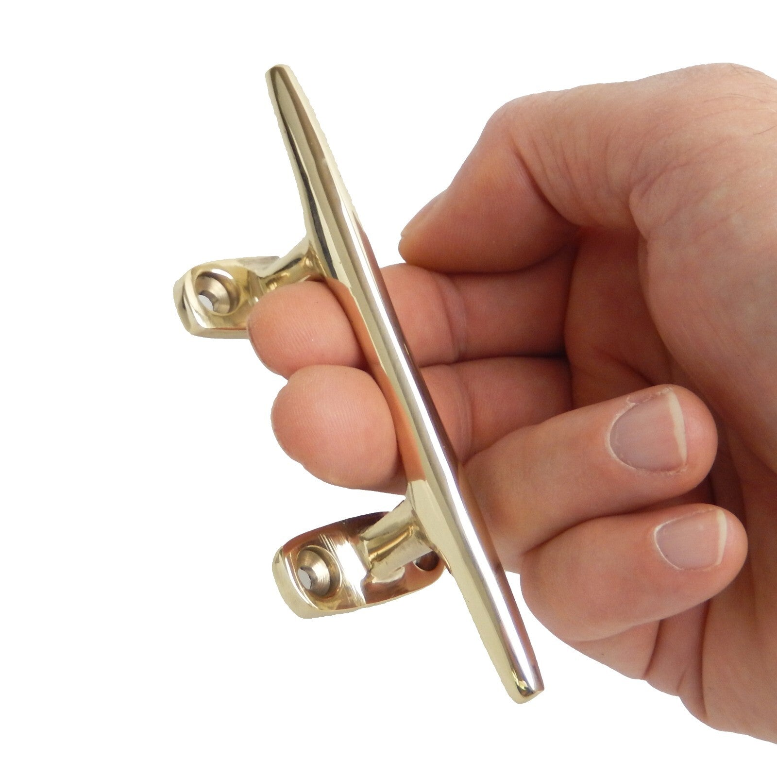 Small Polished Brass Boat Cleat Wall Hook Coat Towel Hanger Handle Pull 4 3/8 in