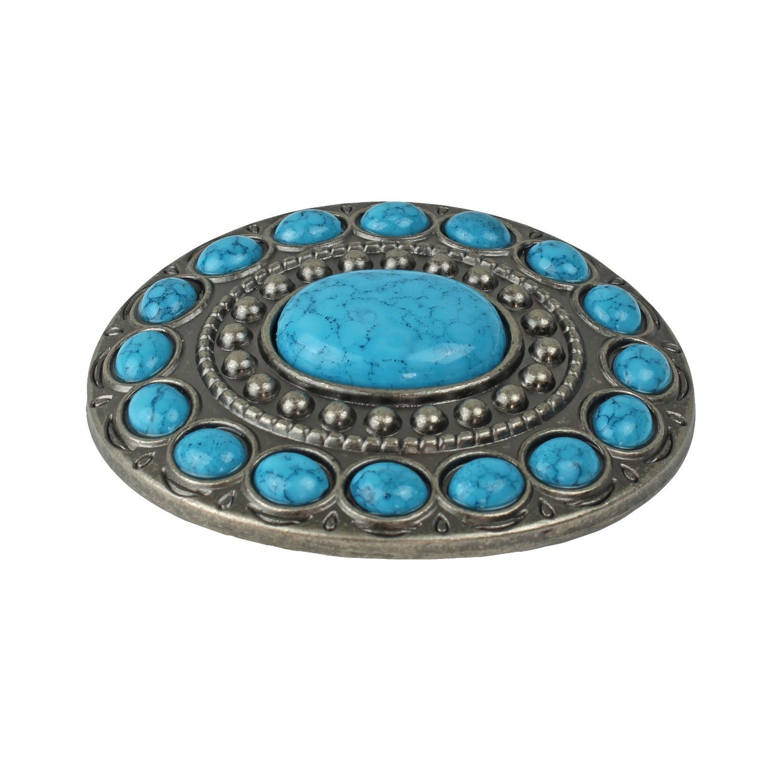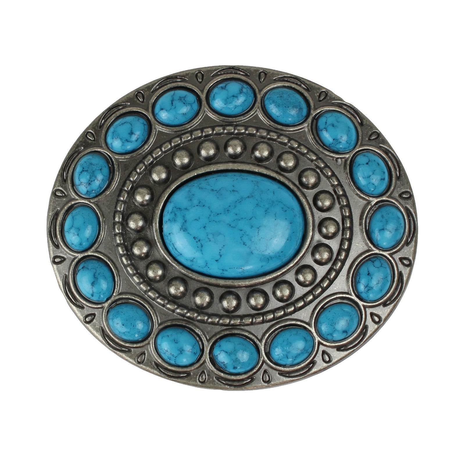 Southwestern Turquoise Beads Oval Belt Buckle Antique Silver Fits 1.5 inch Belts