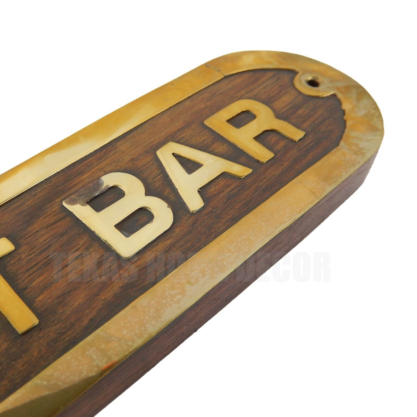 Spirit Bar Wooden Wall Plaque Sign Rustic Golden Metal Accent Man Cave Decor