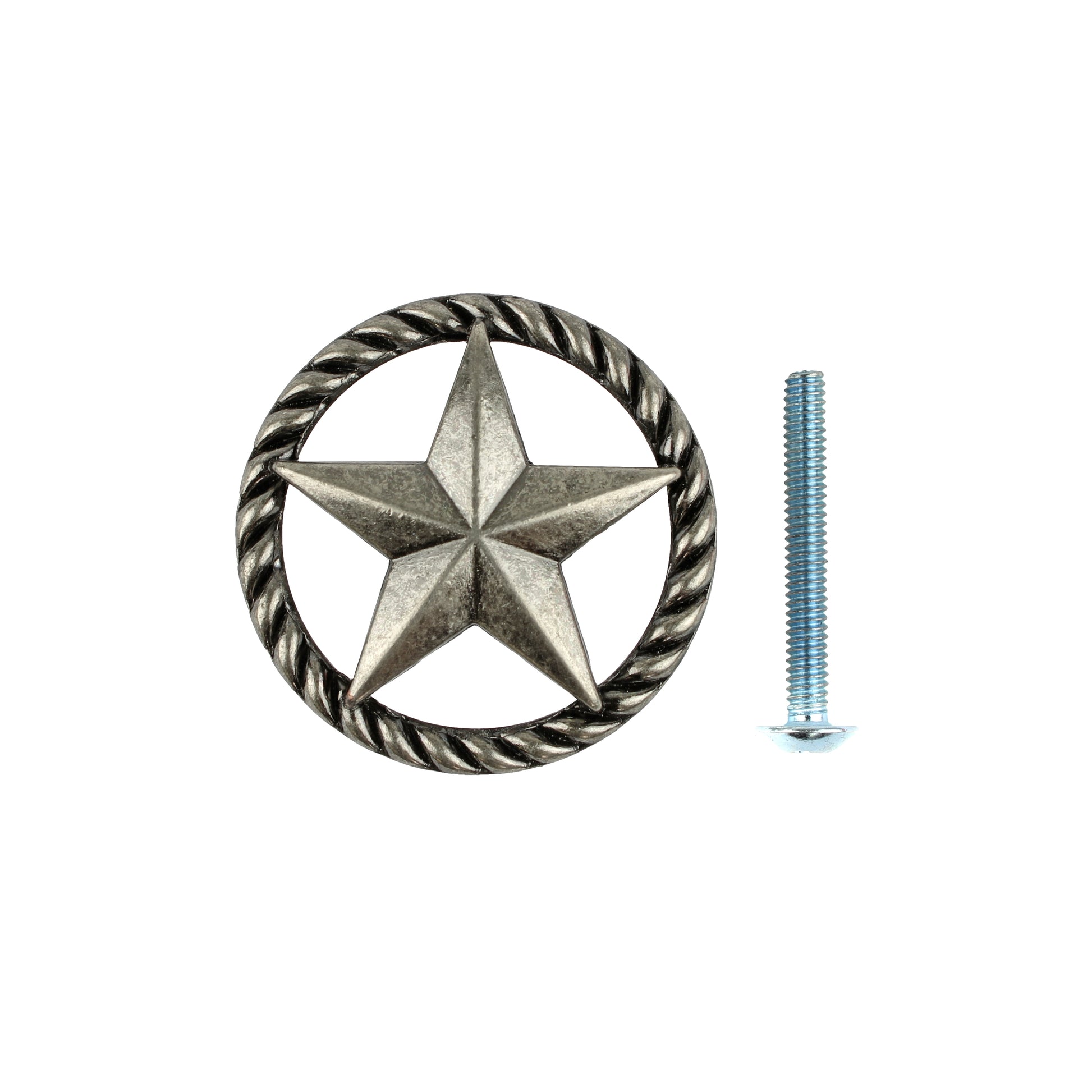 Antique Silver Texas Star Rope Round Drawer Knob Pull Cabinet Hardware 1.5 in