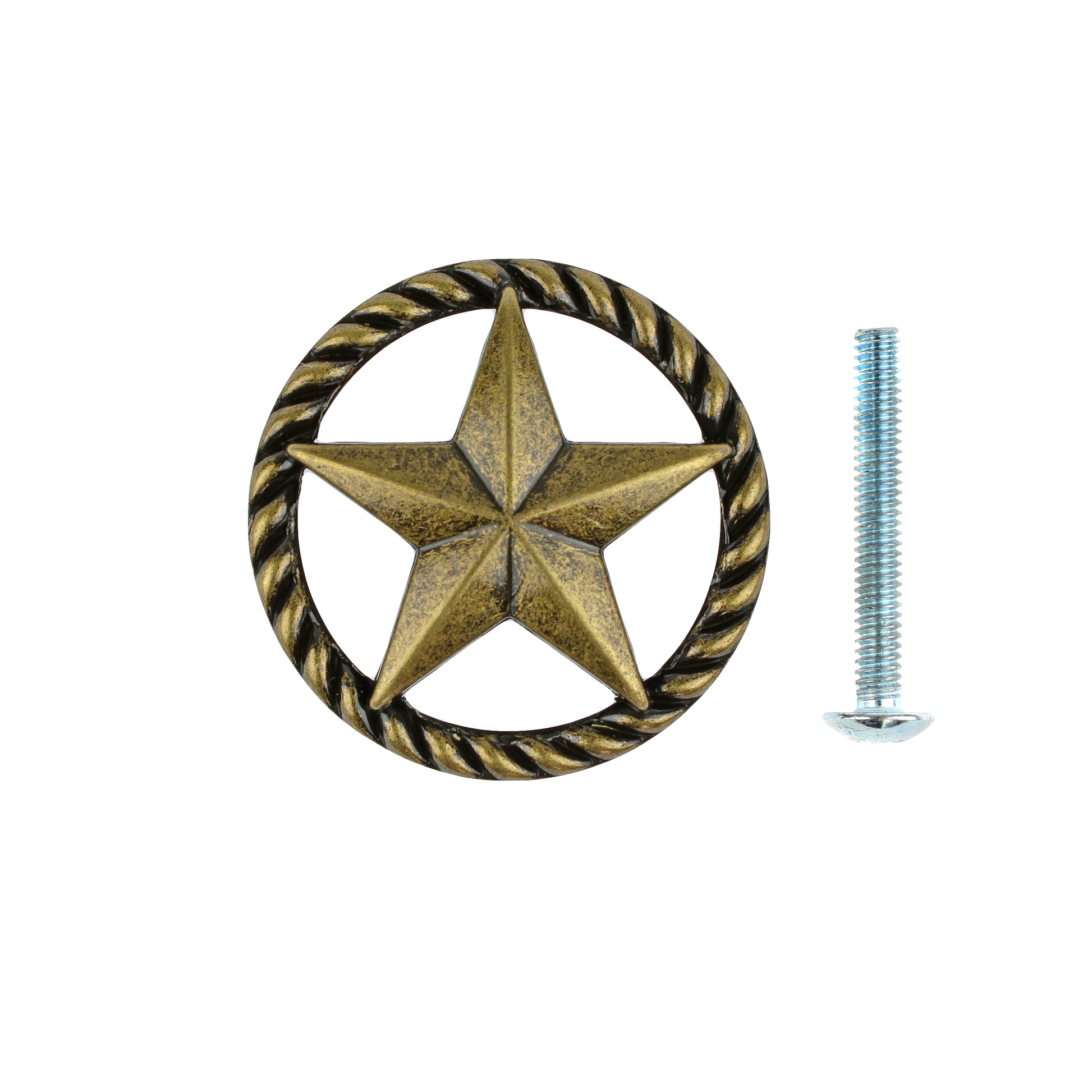 Antique Brass Round Texas Star Rope Cabinet Drawer Door Knob Pull 1.5 inch