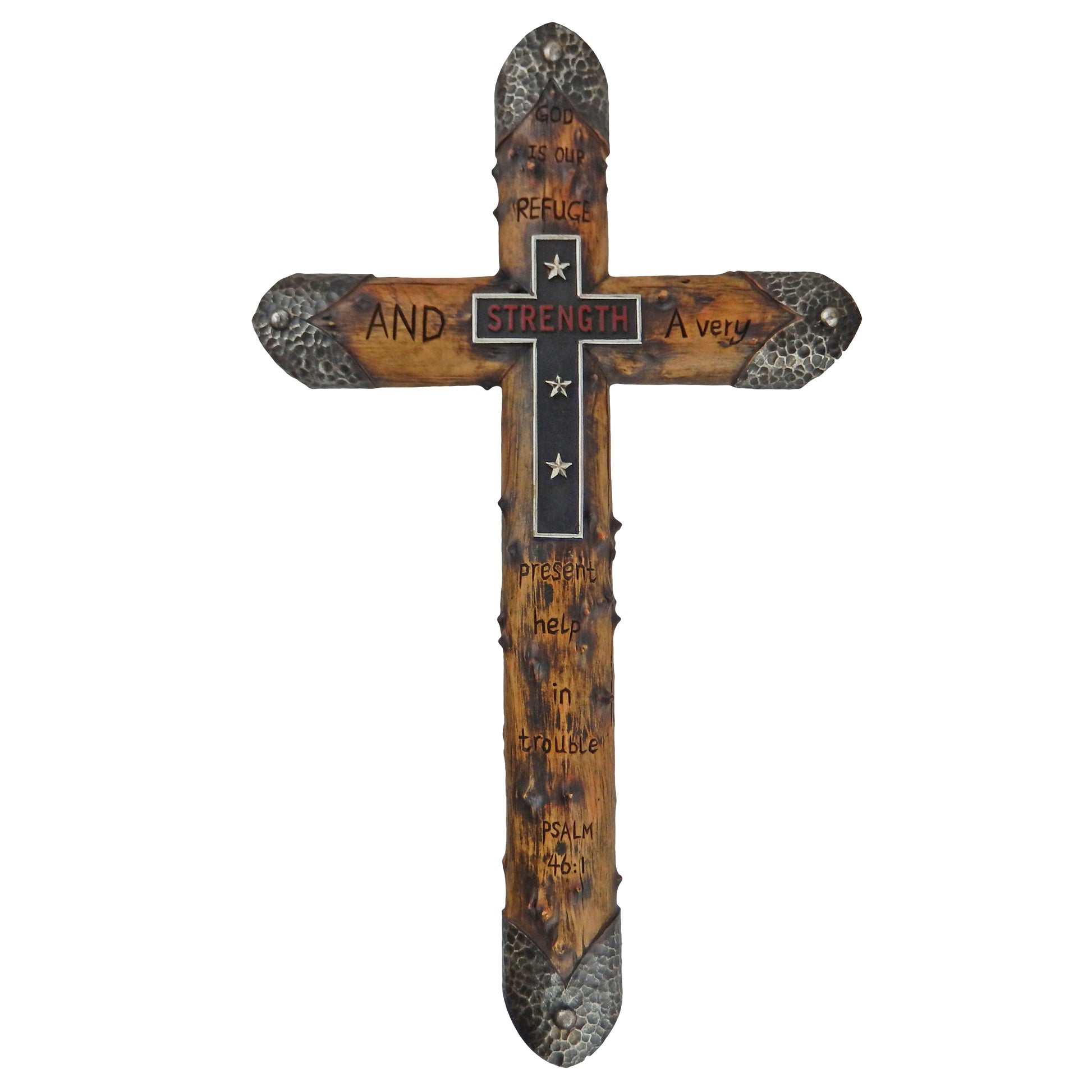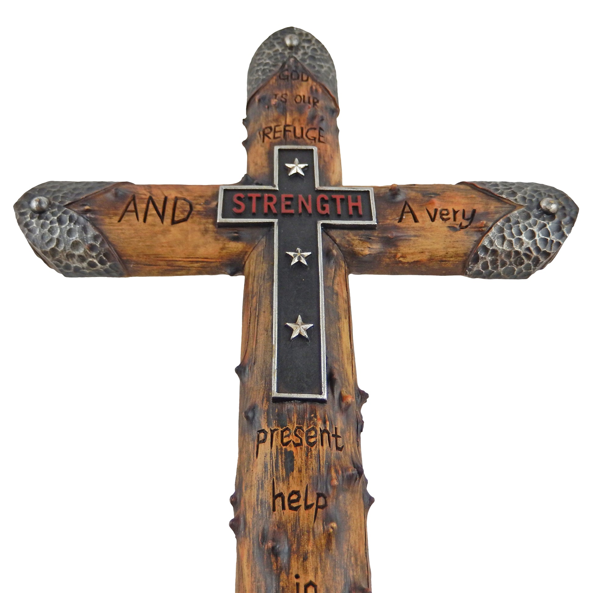 Strength Carved Inspirational Wall Cross PSALM: 46:1 Rustic Wood Look Stars 20 inch #43878