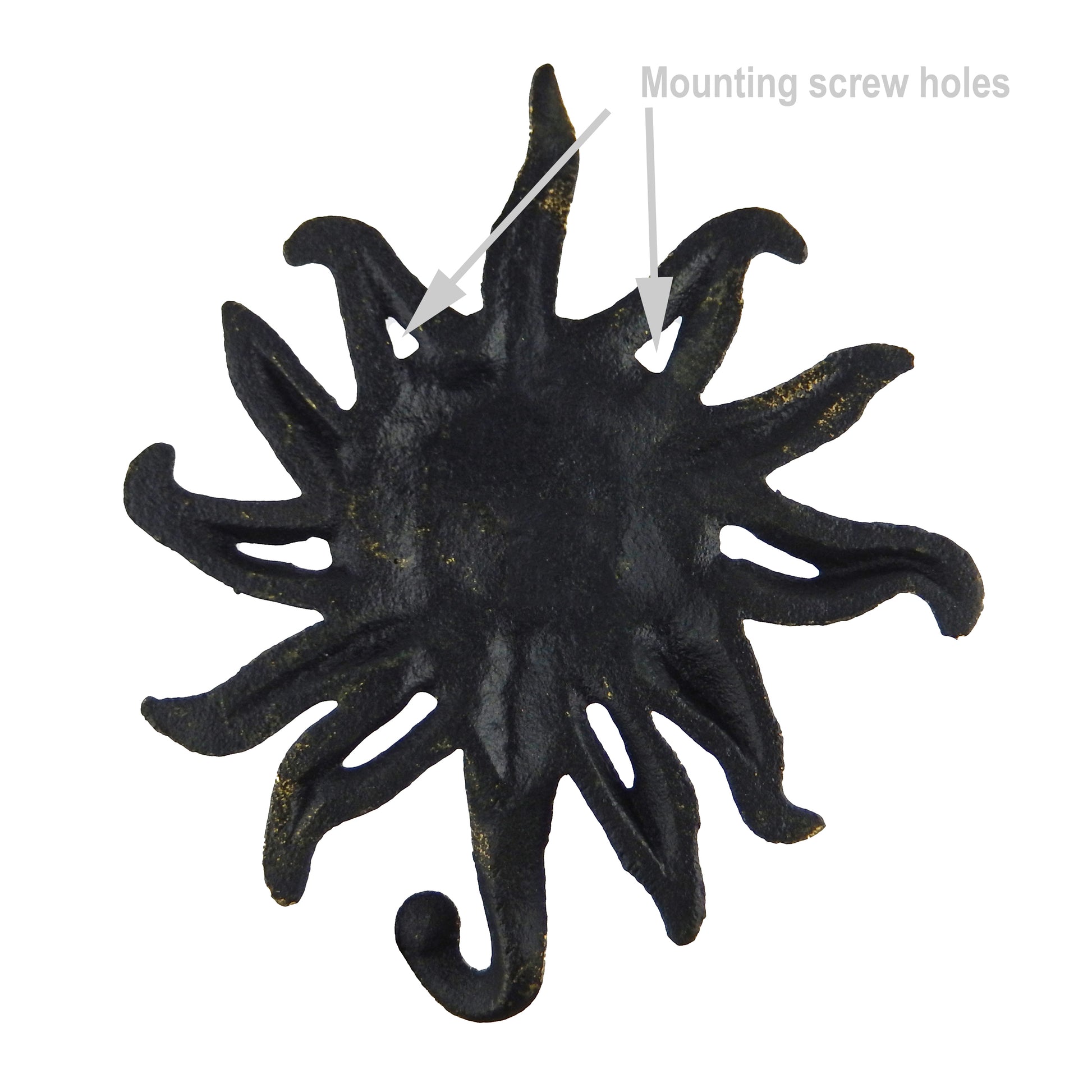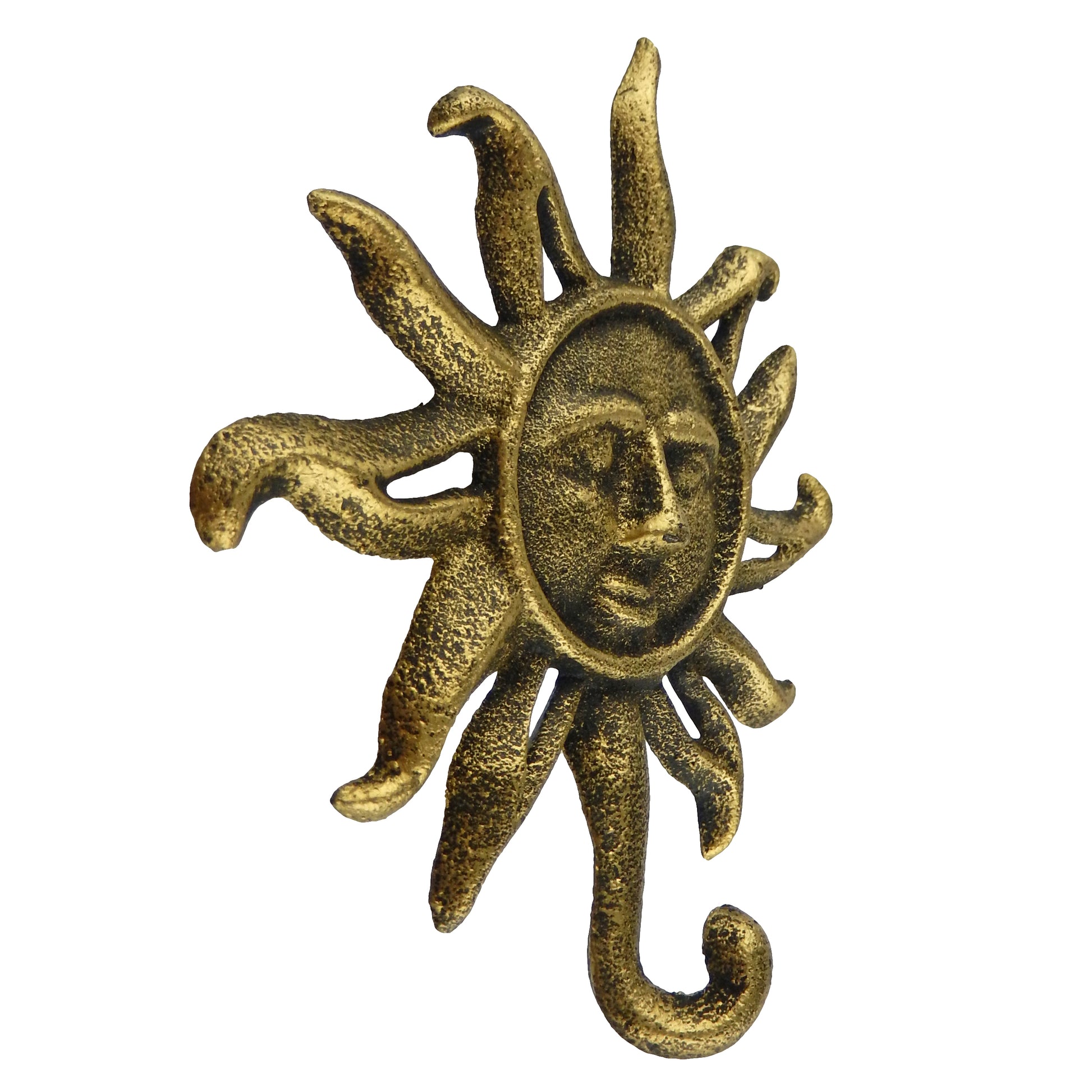 Sun Face Key Holder Hook Cast Iron Wall Mounted Antique Bronze Gold Finish
