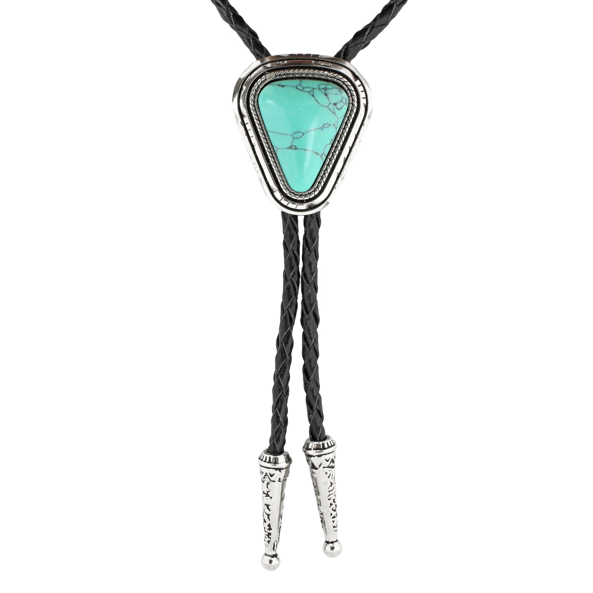 Teardrop Natural Real Turquoise Stone Bolo Tie 40" Adjustable Leather Cord