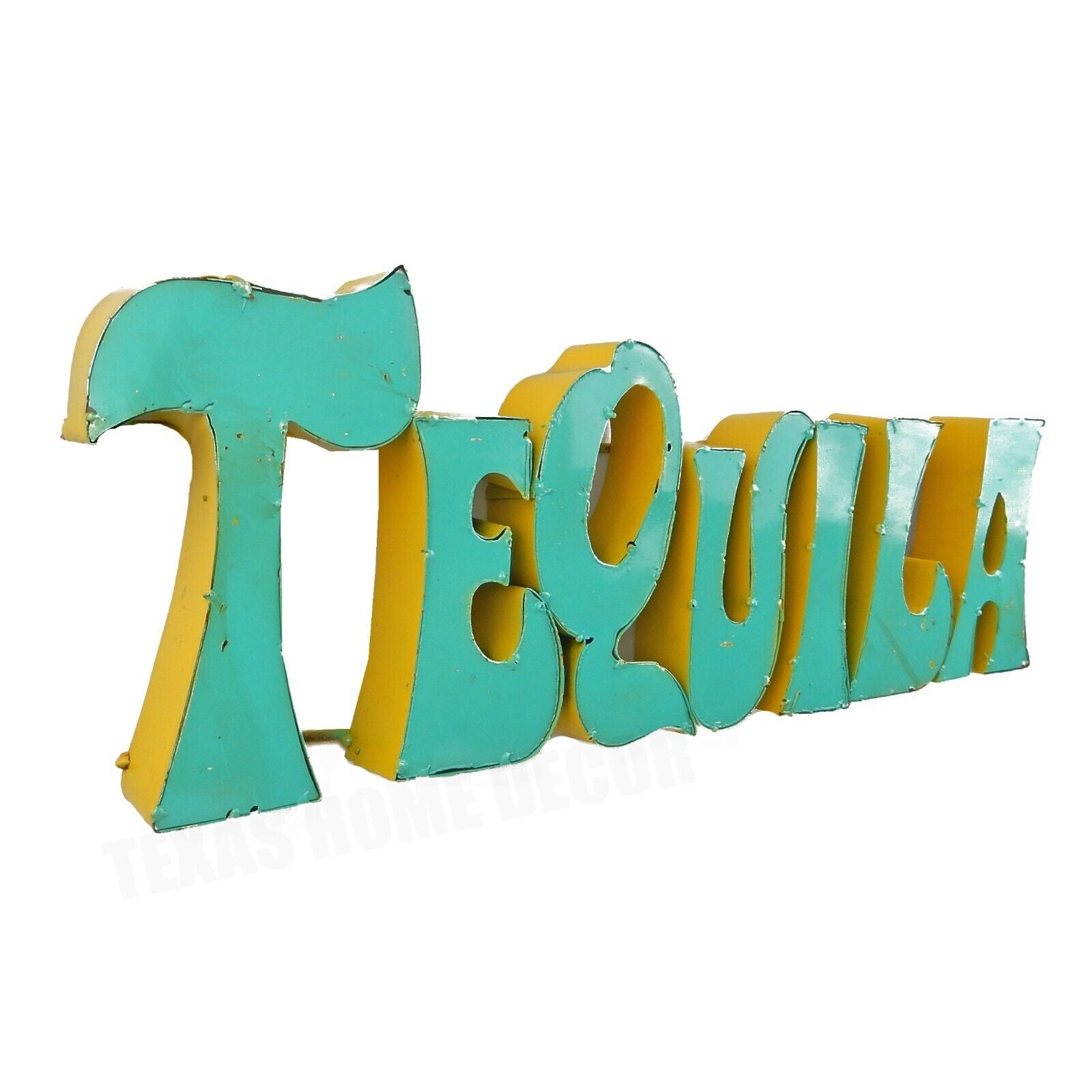 Tequila Recycled Metal Sign Colorful Mexican Bar Cantina Wall Decor 21.5 in