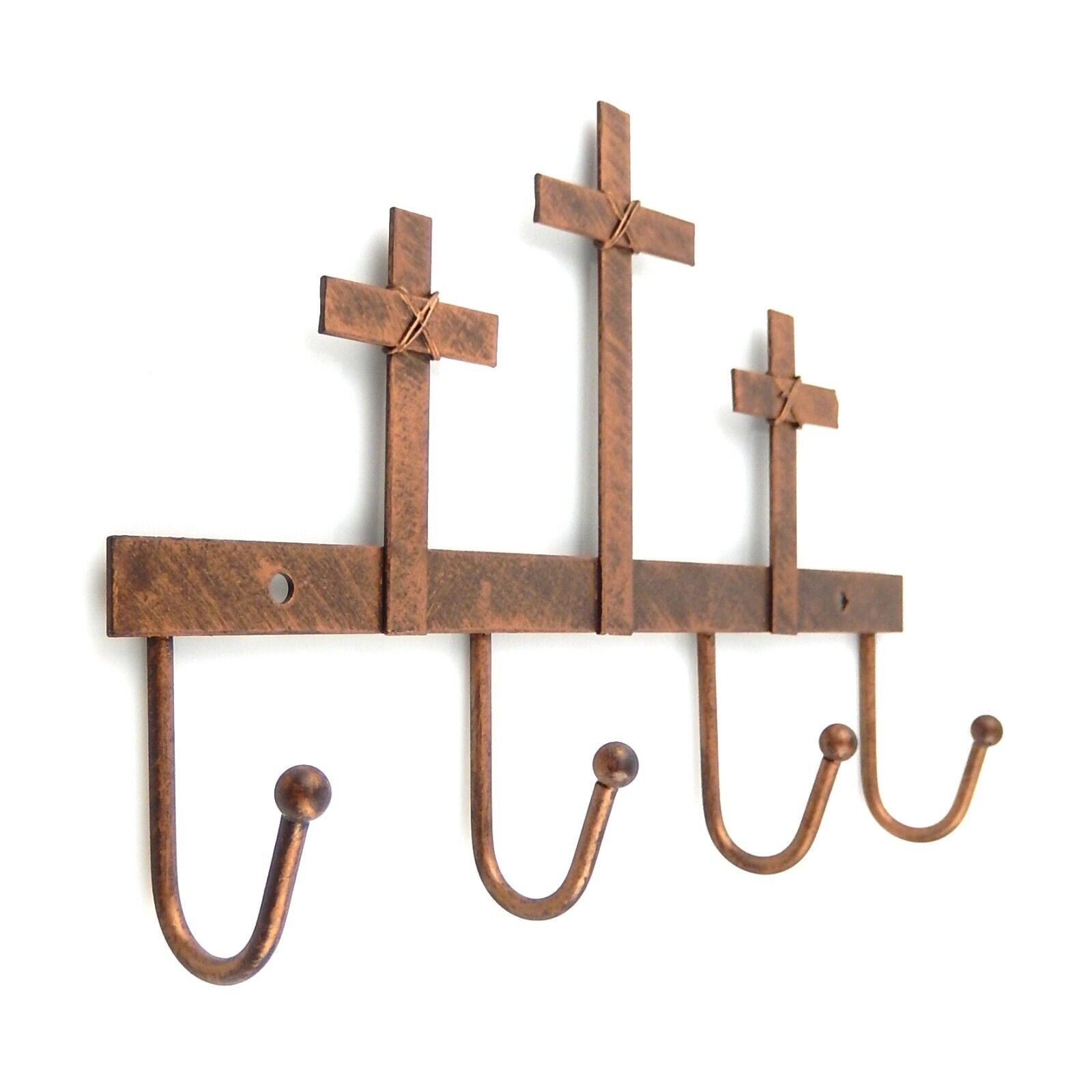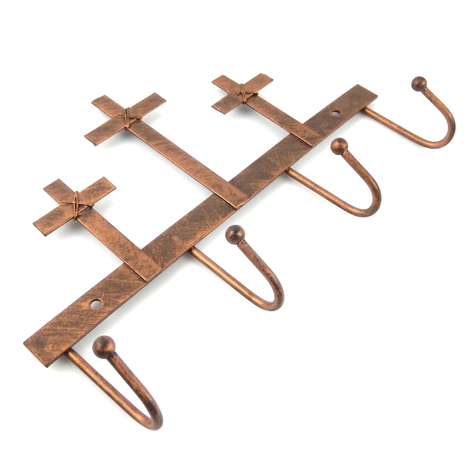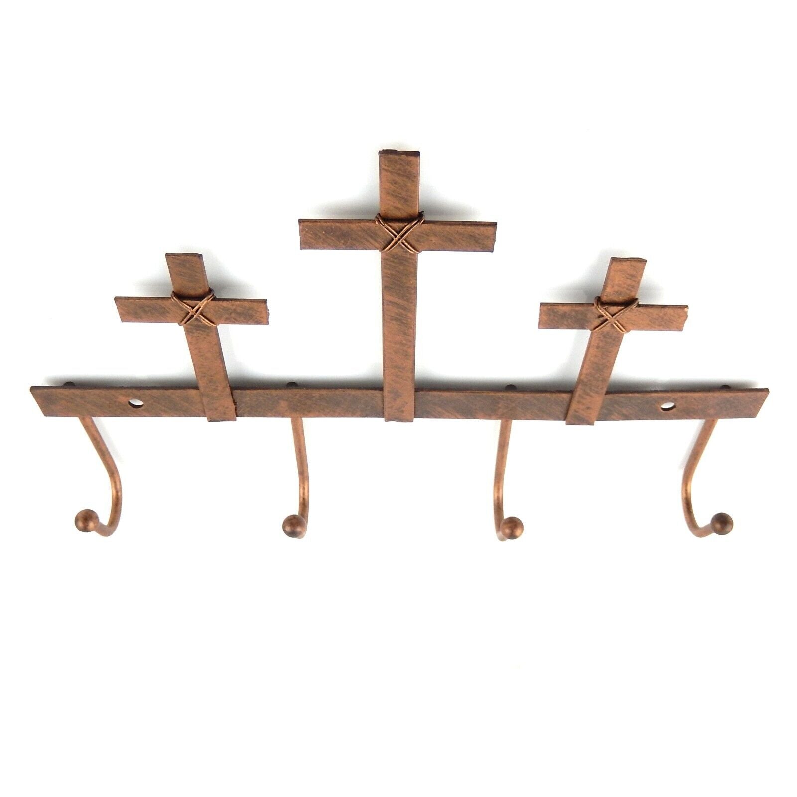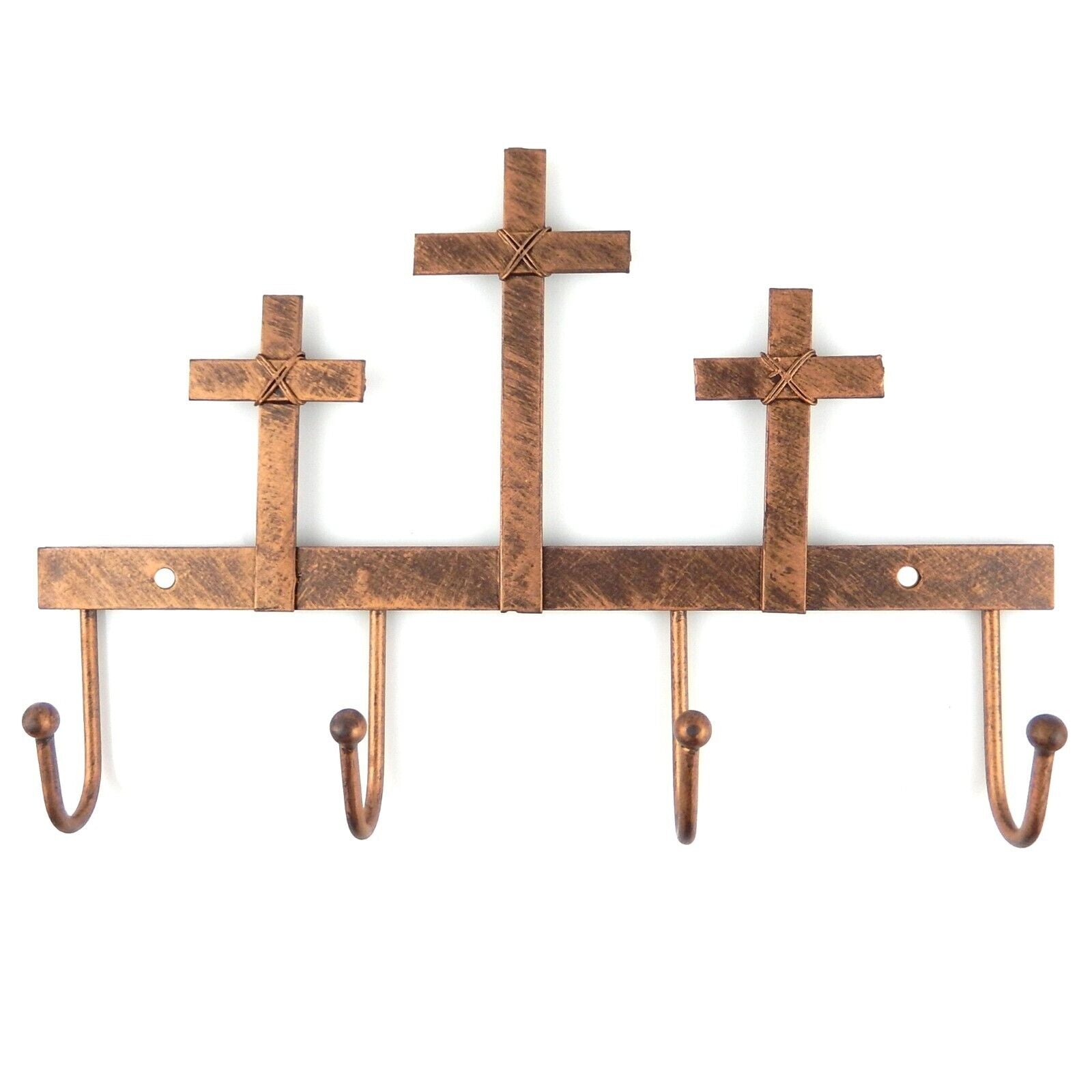 Three Crosses Key Rack Wall Hook Hanger With Four Hooks Tin Metal Copper Finish