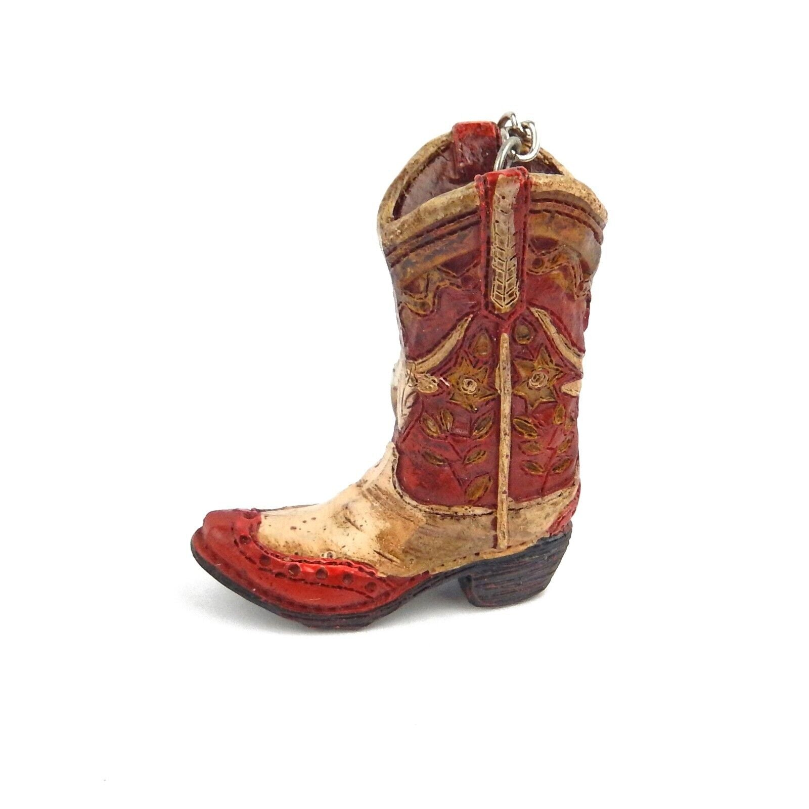 Tiny Cowboy Boot Keychain Key Ring Hand Painted Polyresin Western Floral Red