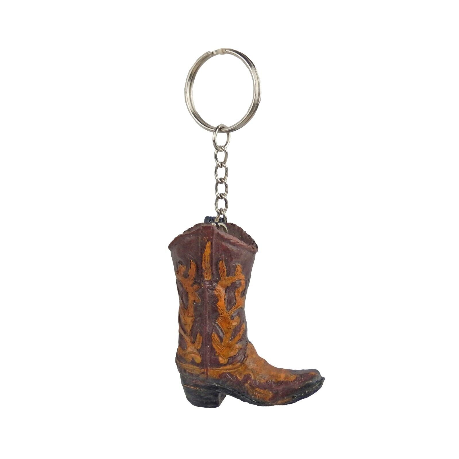Tiny Cowboy Boot Keychain Key Ring Hand Painted Polyresin Western Style Brown